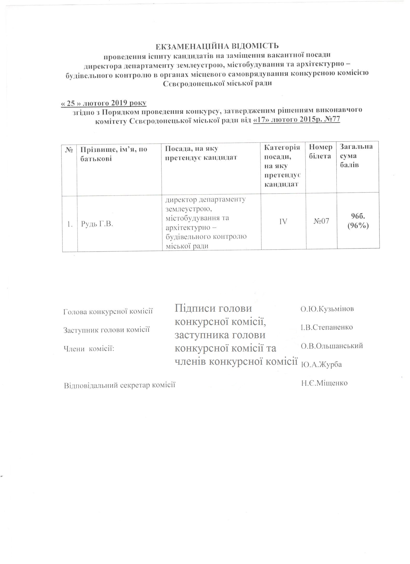 Екзаменаційна відомість до протоколу № 01-1