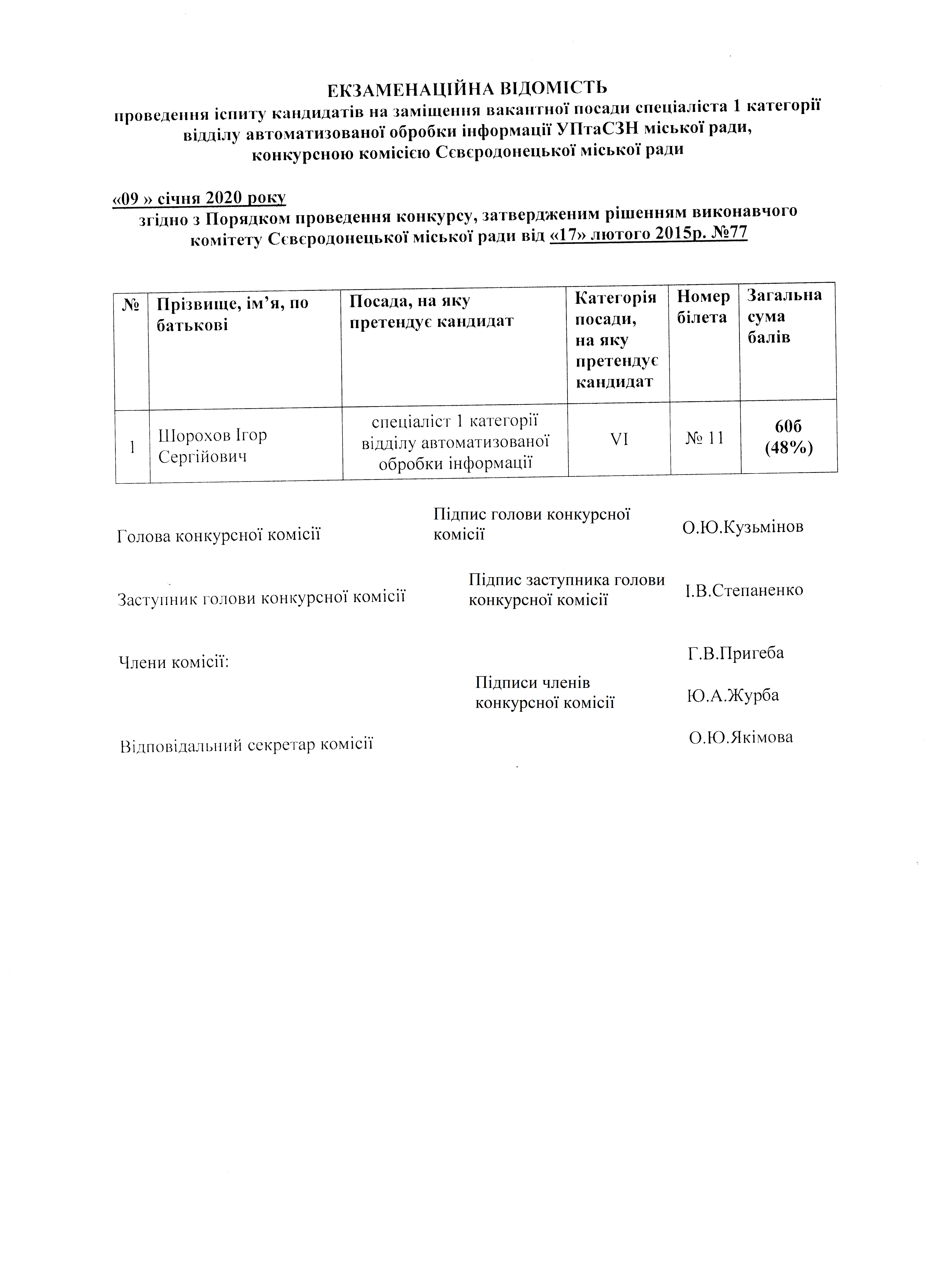 Екзаменаційна відомість до протоколу № 01/1