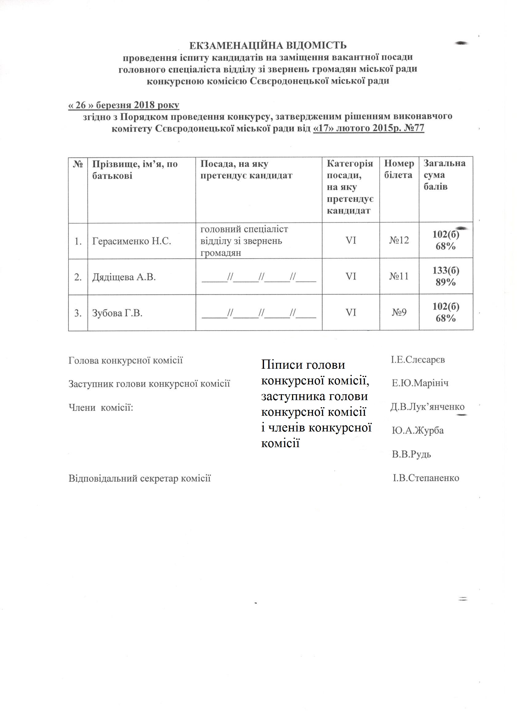 Екзаменаційна відомість до протоколу №03-1