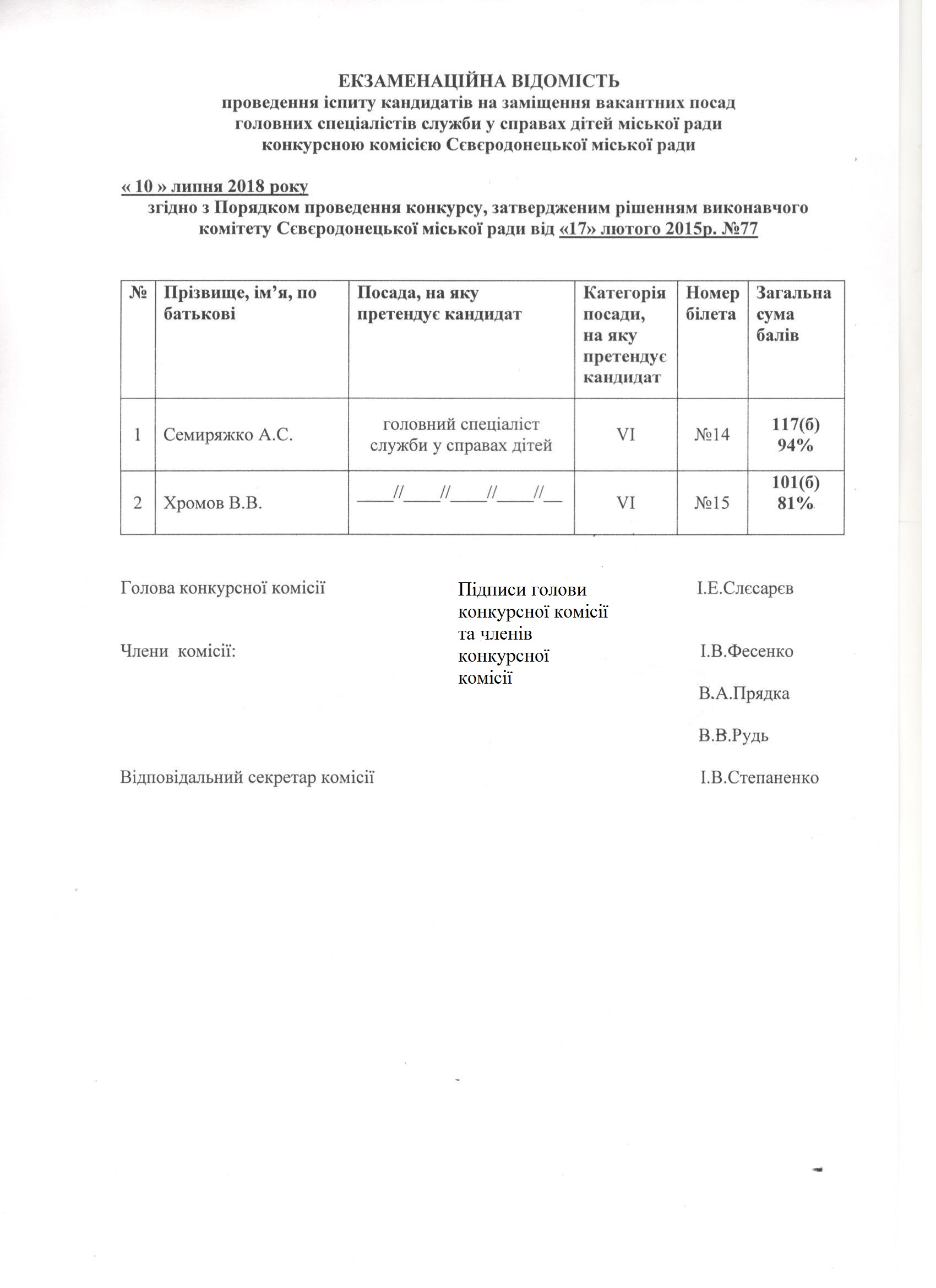 Екзаменаційна відомість до протоколу №10-2