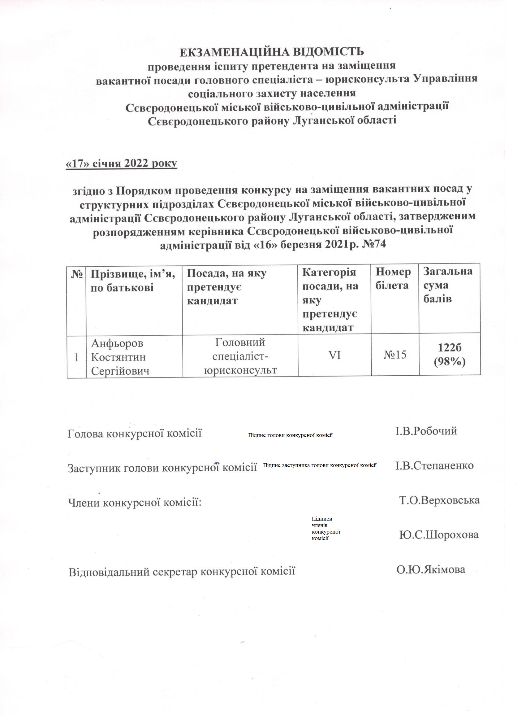 Екзаменаційна відомість до протоколу від 17.01.2022 №01/1