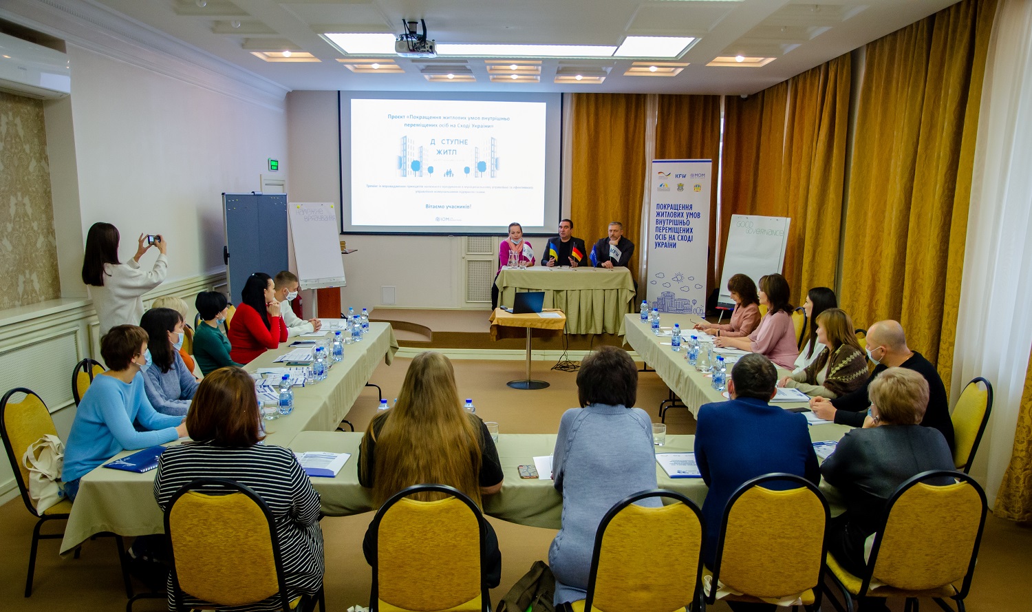 У рамках реалізації проєкту Міжнародної організації з міграції (МОМ) в Україні «Покращення житлових умов ВПО на Сході України» для представників Сєвєродонецької міської військово - цивільної адміністрації проведений семінар з планування діяльності та вивчення досвіду у сфері будівництва та управління на місцевому рівні, організований МОМ в рамках співробітництва за проєктом по забезпеченню житлом внутрішньо переміщених осіб (ВПО), фінансування якого здійснюється за підтримки Кредитної установи для відбудови(KfW).