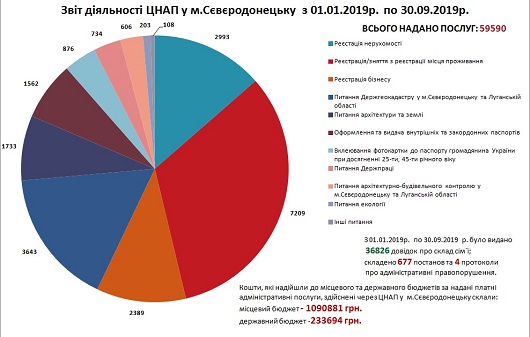 Звіт діяльності ЦНАП у м.Сєвєродонецьку з 01.01.2019р. по 30.09.2019р.