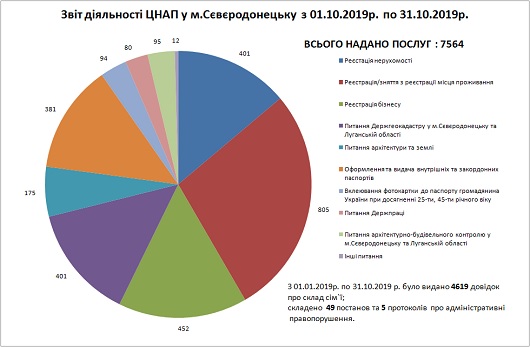 Звіт діяльності ЦНАП у м.Сєвєродонецьку з 01.01.2019р. по 31.10.2019р.