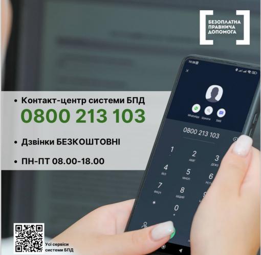 0 800 213 103 - контактний центр системи безоплатної правничої допомоги