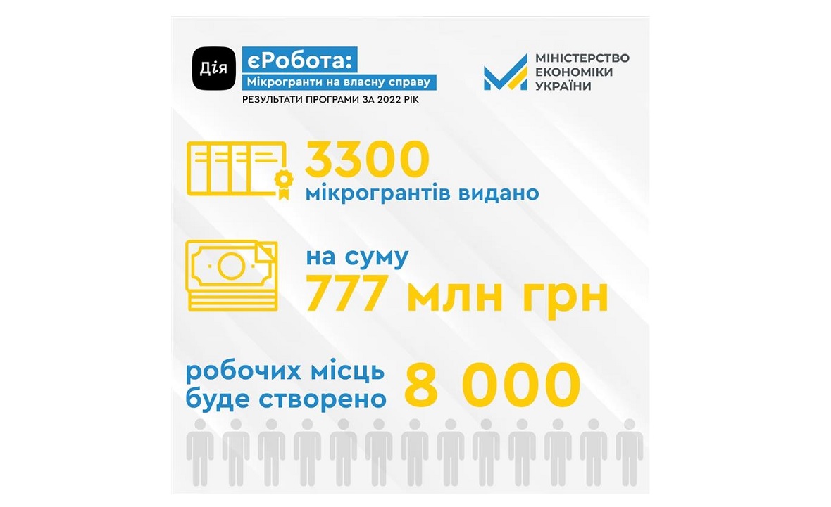 Нагадаємо, програма “Власна справа” стартувала 1 липня 2022 року. За цією програмою можна отримати мікрогрант на старт або розвиток бізнесу від 50 до 250 тис. грн. Обов'язковою умовою отримання мікрогранту є створення 1-2 нових робочих місць залежно від суми наданого мікрогранту. У 2022 році відбулось 12 хвиль подачі заяв на отримання мікрогрантів, кожна з яких тривала 2 тижні. Загалом було видано мікрогрантів на 777 млн гривень.