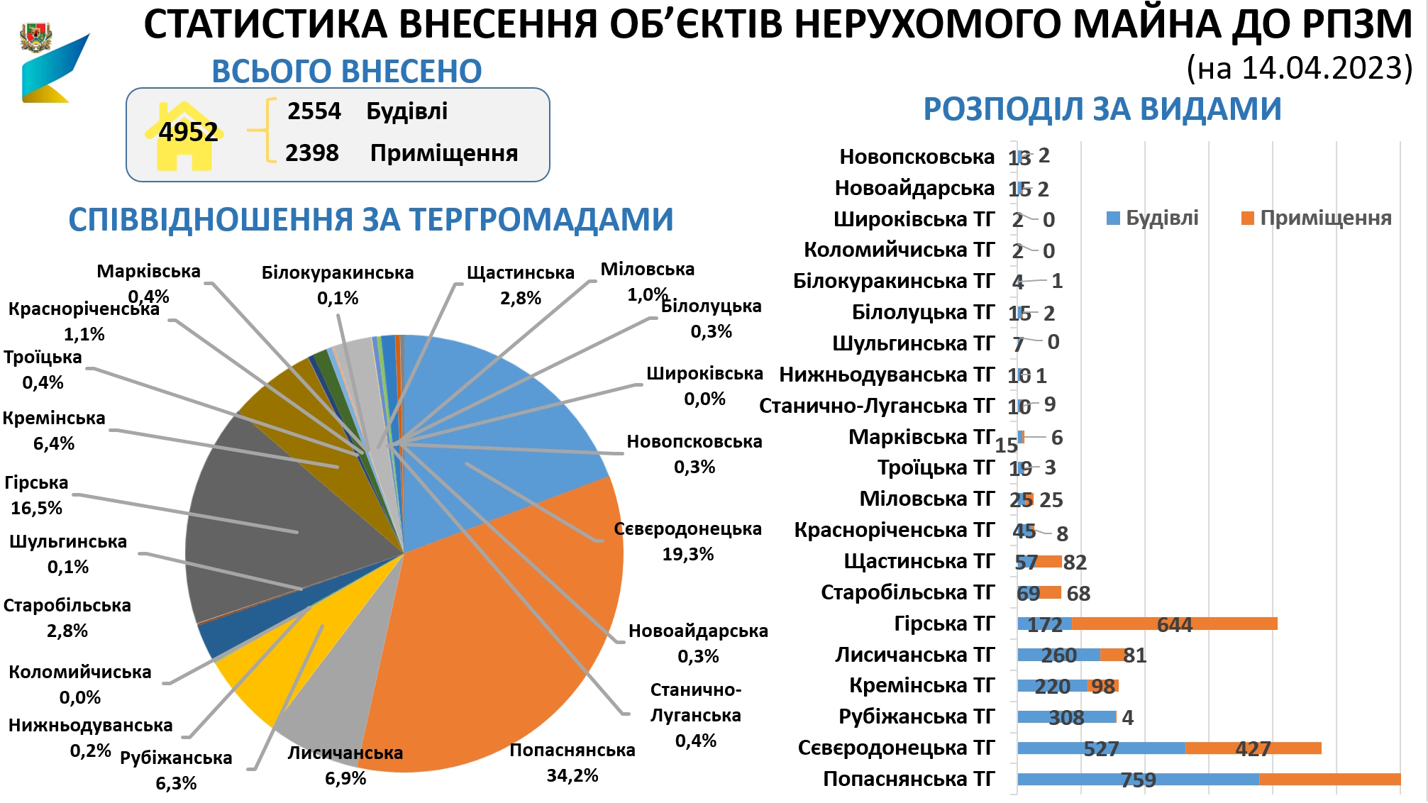 Всього до РПЗМ внесені 4952 об’єкта нерухомого майна, у тому числі 2554 будівлі, 2398 приміщень.