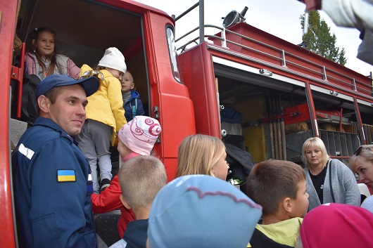 У гості до клубу організатори свята запросили справжніх рятувальників з професійною технікою. На дітей чекала естафетна програма «Юний рятувальник» та, мабуть, найбільш захоплююча частина зустрічі – знайомство наживо з пожежною машиною. Ось де дітлахи змогли відчути себе дорослими та майже справжніми рятувальниками.