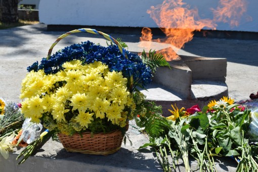 Після чого делегація рушила на площу Перемоги, де монументальна споруда спрямовується увись, у сине безкрайнє небо, наче закликаючи мир. До підніжжя пам’ятника переможцям у Великій Вітчизняній війні учасники мітингу також поклали квіти, традиційно вшанувавши пам’ять жертв війни в Україні у скорботній тиші.