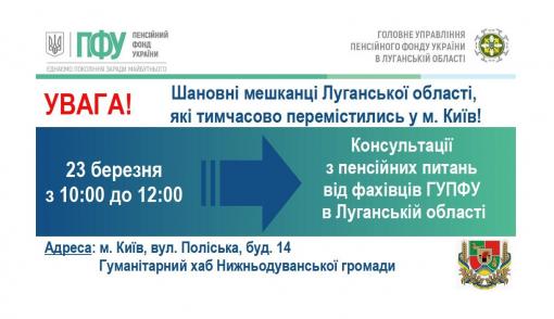 23 березня у Києві ВПО з Луганщини прийматимуть фахівці Головного управління Пенсійного фонду України в Луганській області