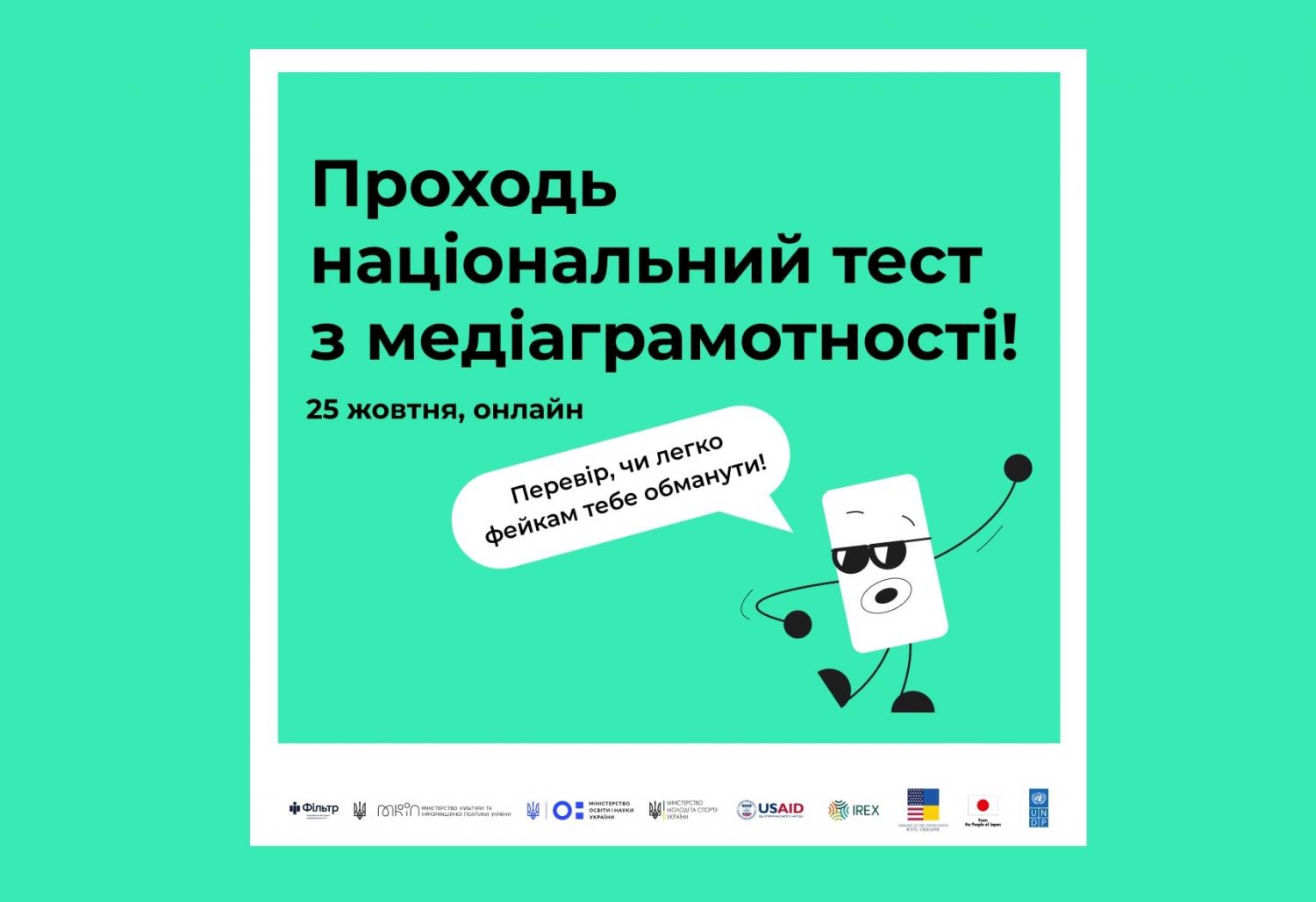 25 жовтня відбудеться щорічний тест із медіаграмотності, який організовує національний проєкт із медіаграмотності Міністерства культури та інформаційної політики «Фільтр» до Глобального тижня медіаграмотності 23–29 жовтня. Це вже вдруге Україна приєднується до цієї ініціативи.