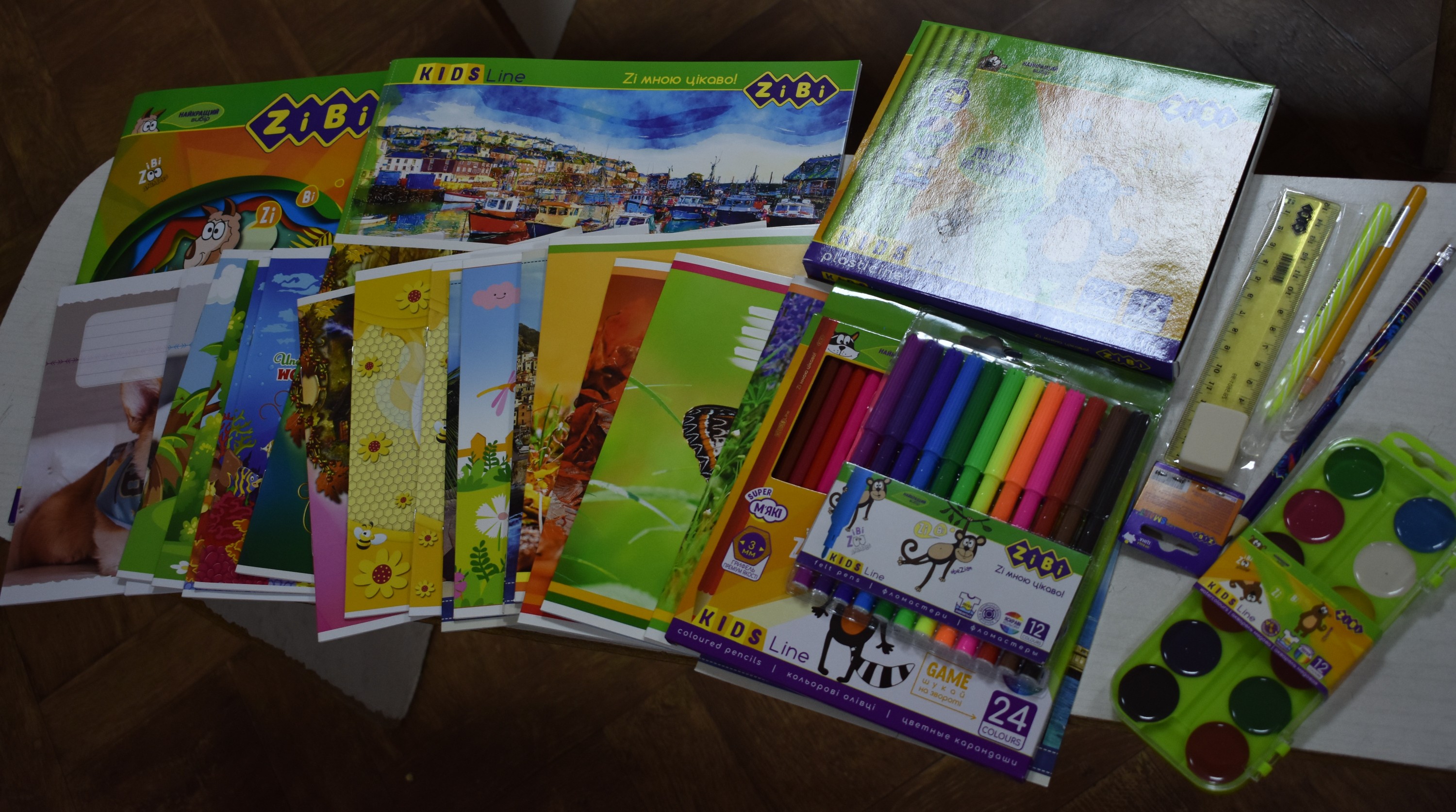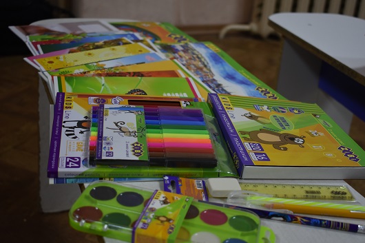 До складу таких необхідних для школяриків приладь увійшли: альбом для малювання, кольоровий папір, зошити — 10 клітина та 10 коса лінія, пластилін, фломастери, кольорові олівці, фарби, лінійка, олівець, ручки - 2, гумка. Вартість одного набору становила 300 грн. (кошти міського бюджету).