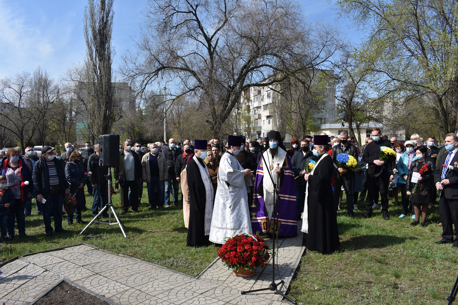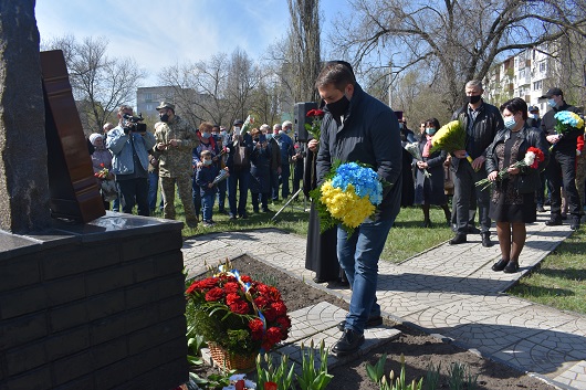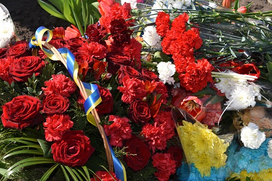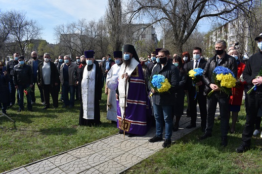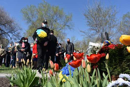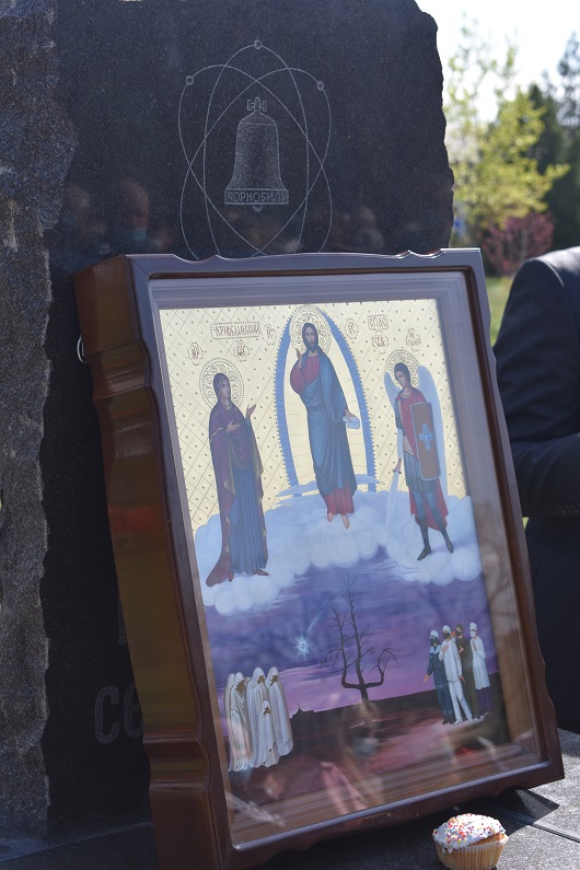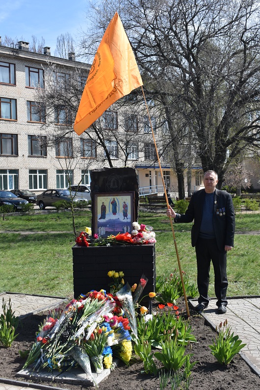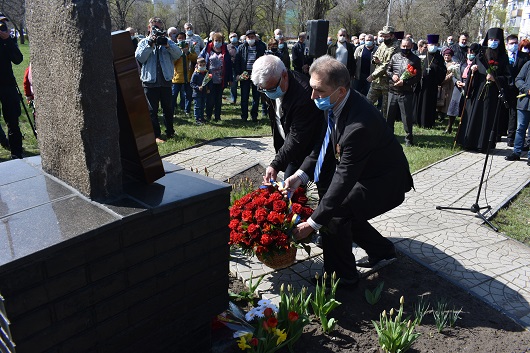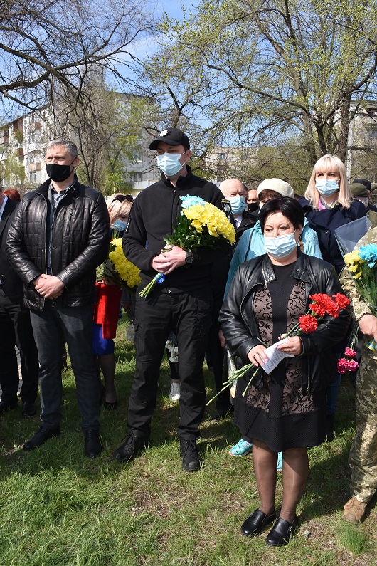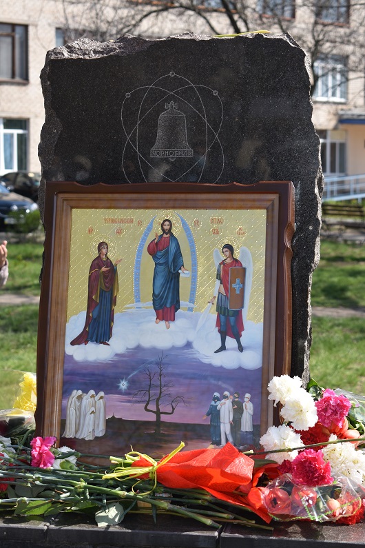 На знак пошани та пам’яті великого подвигу людей, які своїм життям закрили людство від атомної біди, присутні поклали квіти до пам’ятного знаку жертвам Чорнобилю.