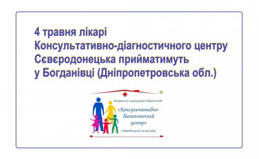 4 травня лікарі Консультативно-діагностичного центру Сєвєродонецька прийматимуть у Богданівці (Дніпропетровська обл.)