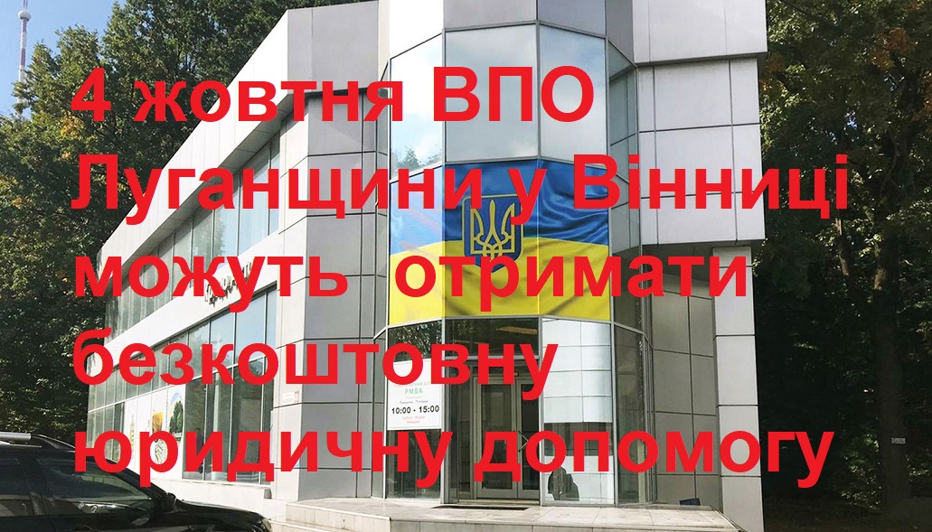 4 жовтня ВПО Луганщини у Вінниці можуть отримати безкоштовну юридичну допомогу у гуманітарному штабі Рубіжанської МВА
