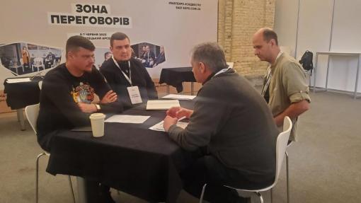У приміщенні Мистецького Арсеналу організовано ярмарок, відбуваються панельні дискусії, на яких обговорюються питання економічного відновлення, релокації та адаптації бізнесу, енергоефективності, міжрегіонального співробітництва.