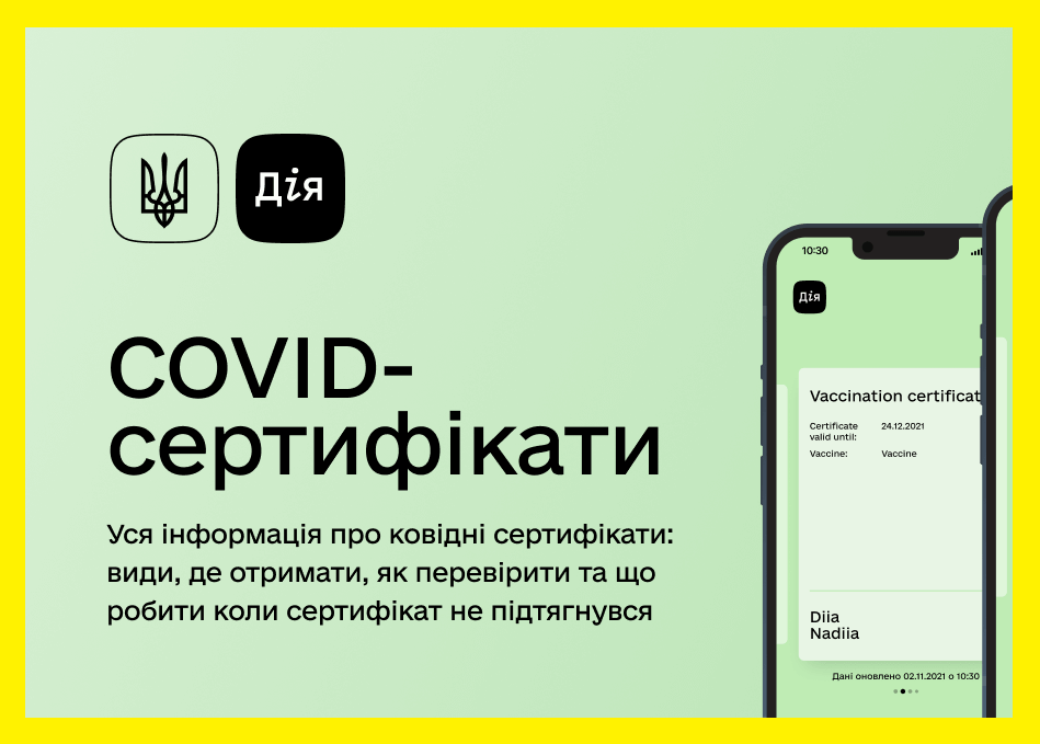 Нагадаємо, що команда Мінцифри спільно з регіональними командами цифровізації України запустила офлайн-пункти Команди підтримки Дії з допомоги в отриманні СOVID-сертифікатів по всіх областях країни. Також допомогу з сертифікатами можна отримати у ЦНАПах, центрах Дія.Бізнес та деяких бібліотеках. Проект реалізовано за допомоги «Цифрові, інклюзивні, доступні: підтримка цифровізації державних послуг в Україні» (Проект підтримки Дія), що впроваджується ПРООН за підтримки Швеції, за підтримки Програми EGAP Фонду Східна Європа, що фінансується Урядом Швейцарії.