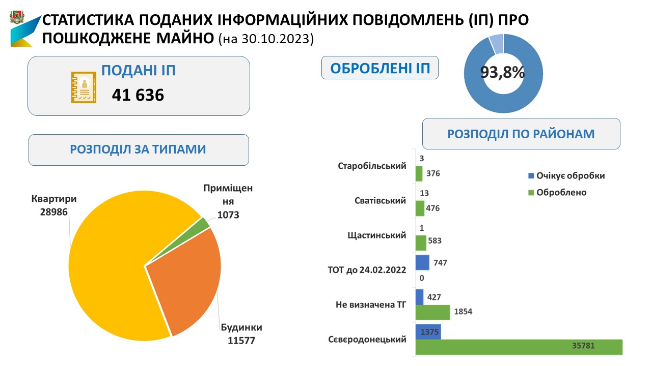 Мешканцями Луганської області подано 41 636 інформаційних повідомлень про пошкоджене/знищене нерухоме майно.