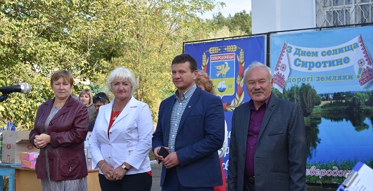 Із щирими словами до своїх односельців звернувся селищний голова Василь Попов, який, між іншим, і сам народився в Сиротиному. Вітаючи присутніх зі святом, він побажав усім міцного здоров’я, добробуту, миру в кожній оселі, процвітання рідному краю. У своїй промові Василь Григорович наголосив, що головною прикрасою села є самі люди – працьовиті, наполегливі, відповідальні та щирі душею. Висловив велику вдячність тим, хто завжди допомогає у розбудові села, роблячи Сиротине день у день красивим й квітучим. Голова селищної ради також зазначив, що з приходом до керівництва міста нової команди, покращився благоустрій у селищі. Саме завдяки виділеним депутатським корпусом коштам, на сьогоднішній день капітально відремонтована дорога у селі, зроблено вуличне освітлення, а завдяки подальшому тісному співробітництву міської та селищної влади можна зробити Сиротине ще кращим.