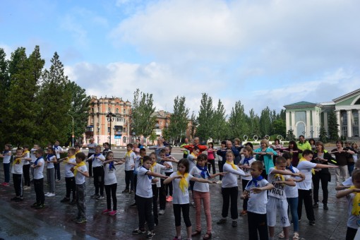 Після нескладних фізичних вправ учасники здійснили забіг навколо скверу біля Сєвєродонецької міської ради.