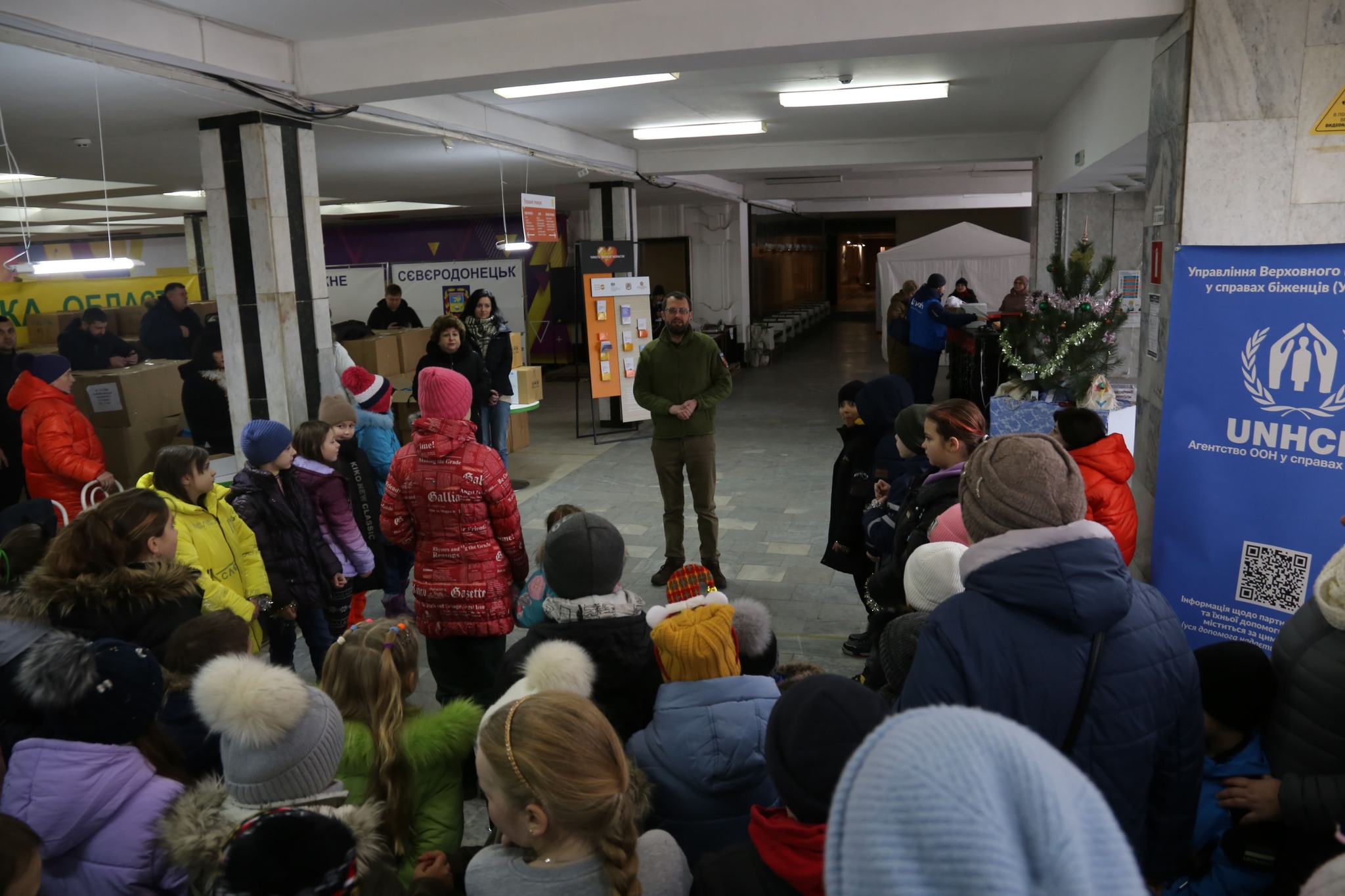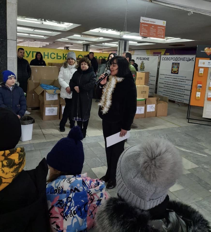 У Сєвєродонецькому гуманітарному хабі в місті Дніпро перший заступник голови Луганської обласної державної адміністрації Олексій Смирнов та в.о. першого заступника керівника Сєвєродонецької міської ВЦА Тетяна Верховська за допомогою Міжнародного благодійного фонду UNICEF розпочали заходи з нагоди новорічно-різдвяних свят, а саме – видачу маленьким мешканцям Луганської області подарунків.