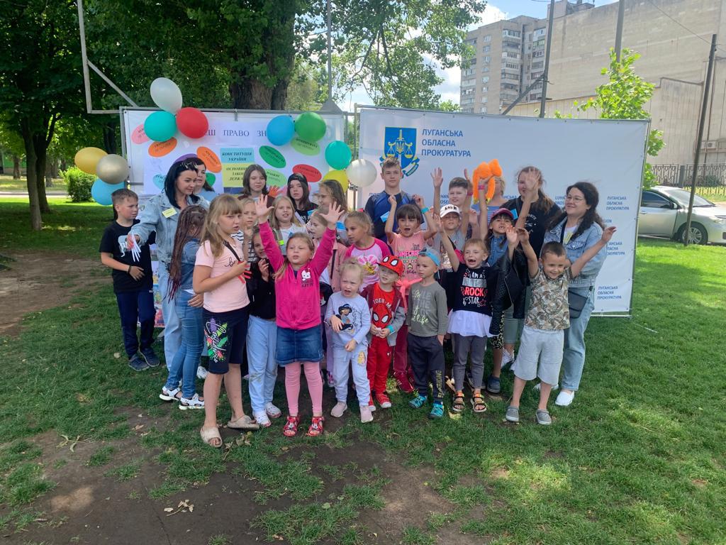 З нагоди Дня Конституції України ювенальними прокурорами Сєвєродонецької та Старобільської окружних прокуратур Луганської області на базі гуманітарного ХАБу Сєвєродонецької військової адміністрації проведено захід «Маєш право знати» з дітьми, які перемістилися з тимчасово окупованої території Луганської області.