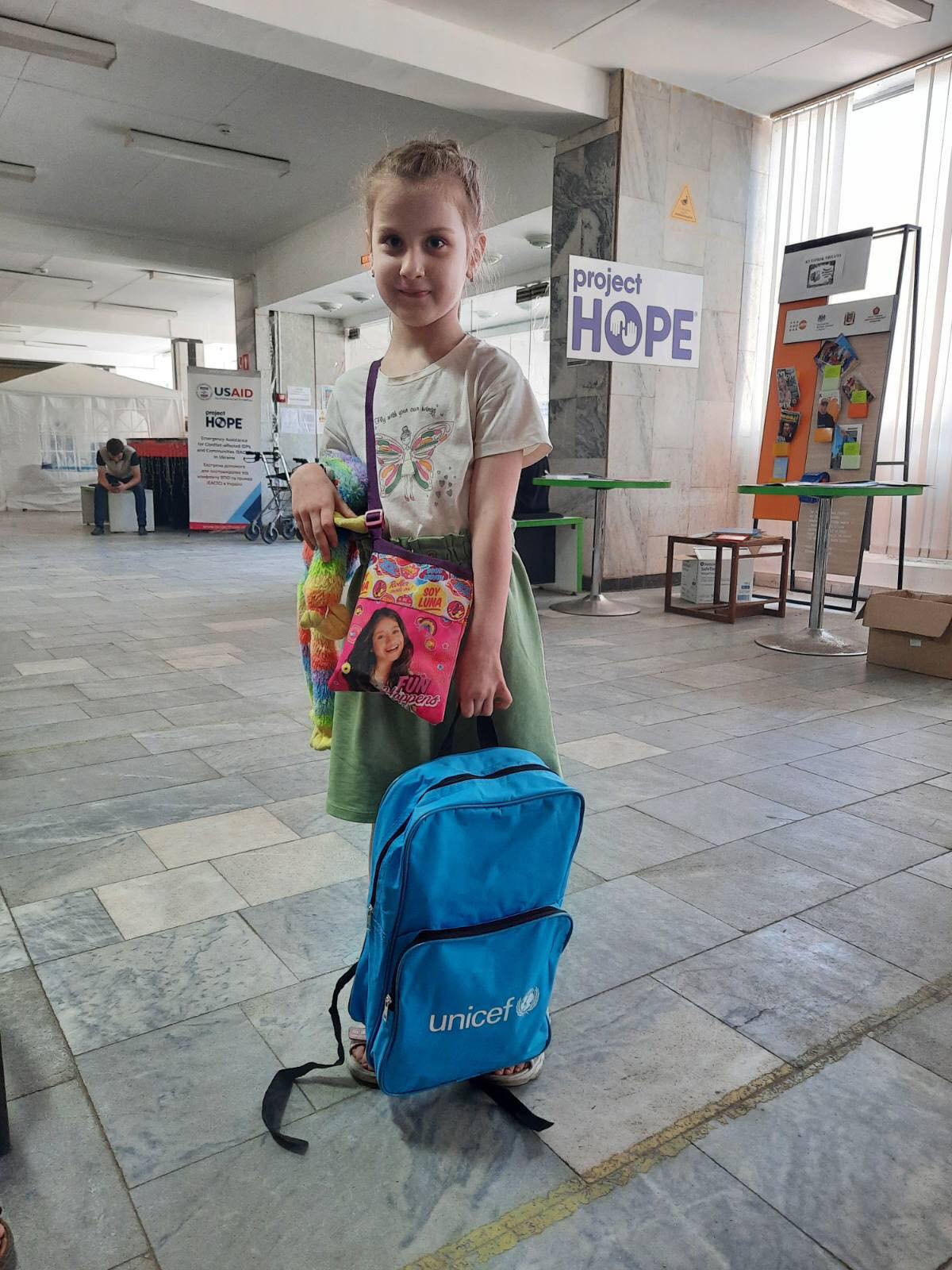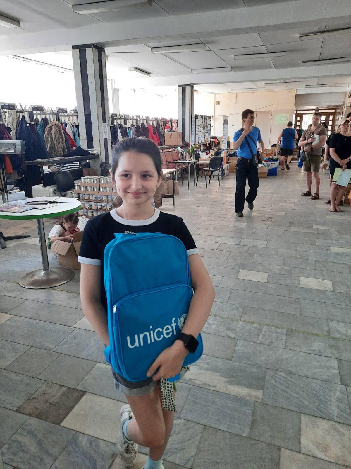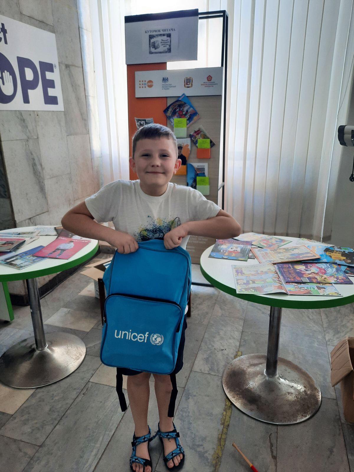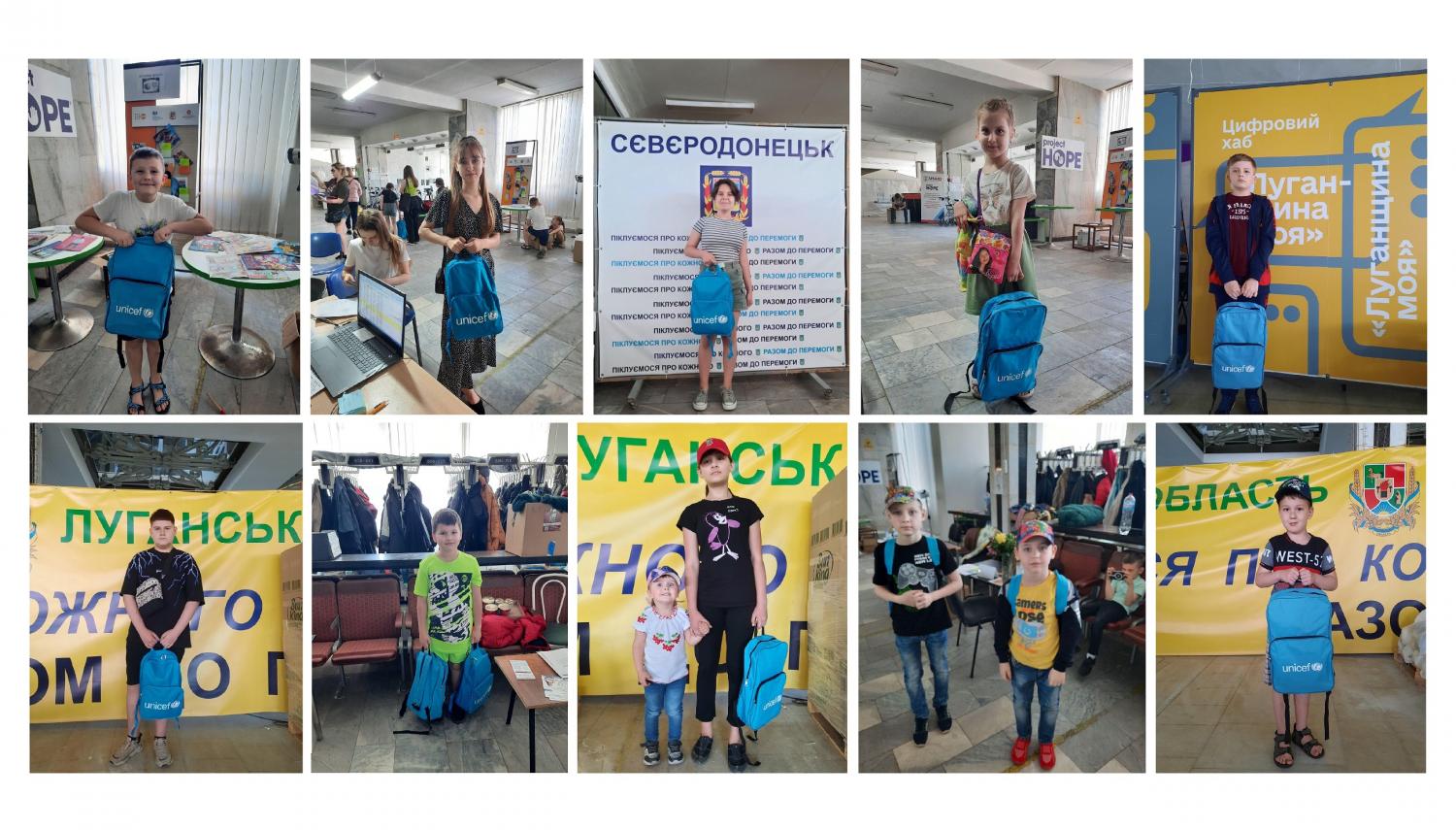1 червня, з нагоди Міжнародного дня захисту дітей, в Гуманітарному хабі Сєвєродонецької міської військової адміністрації у місті Дніпро дітям-переселенцям шкільного віку з Луганщини була організована видача рюкзаків від Дитячого фонду ООН UNICEF Ukraine.