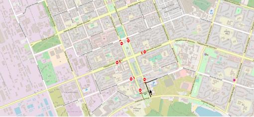 Рух в обох напрямках проспекту Центральний від вулиці Гагаріна до проспекту Гвардійський, ділянка проспекту Гвардійський на 200 метрів від перехресть з проспектом Центральний в обидва напрямки, перехрестя вулиці Маяковського та проспекту Ценральний біля розважального закладу «Ксанаду» та перехрестя вулиці Маяковського та проспекту Ценральний біля магазину «Сімʼя».