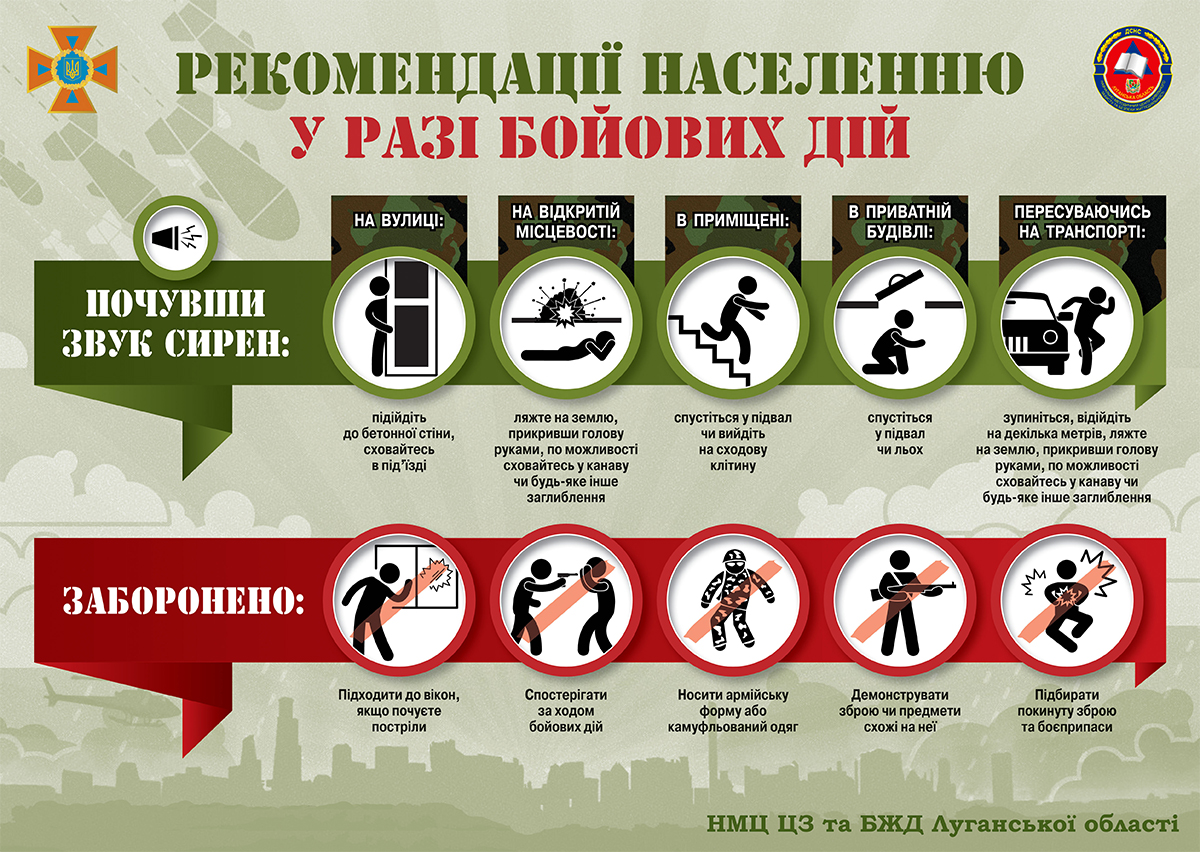 Збройна агресія Російської Федерації проти України та останні події в умовах загострення ситуації на лінії розмежування в Луганській та Донецькій областях вимагають особливої уваги всіх категорій населення до дій на випадок загроз.