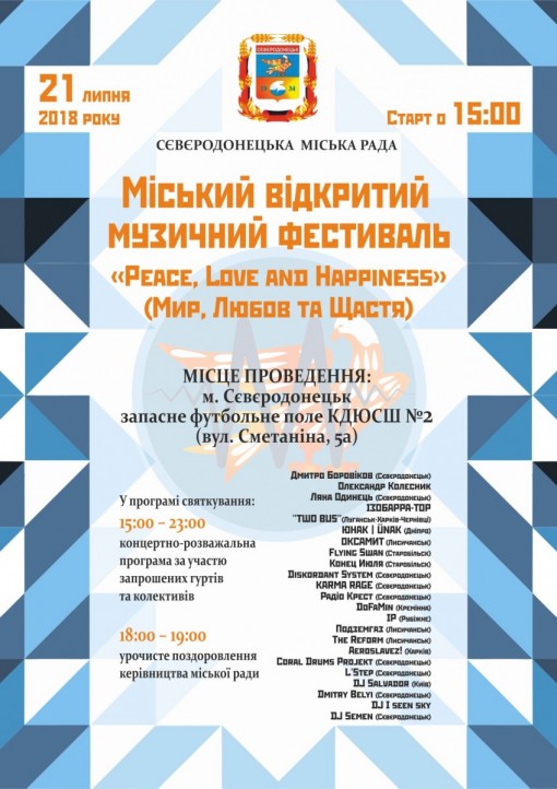 Міський відкритий музичний фестиваль «Peace, Love and Happiness» (Мир, Любов та Щастя)