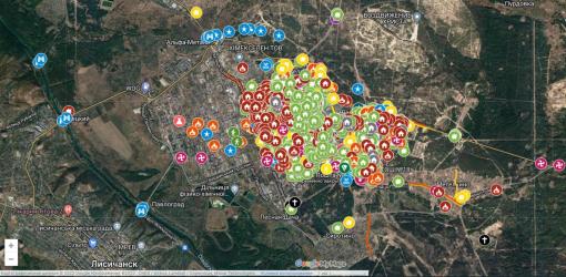 Ентузіаст створив інтерактивну карту, на якій позначені хід та наслідки окупації Сєвєродонецька російськими загарбниками