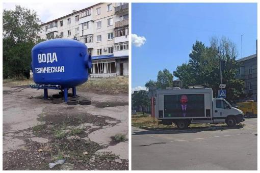 Гігієнічні процедури у місті більше нагадують якісь випробування: аби помитися, містянам треба йти й займати чергу у вуличні "помивочні". Як і "належить", місцева окупаційна влада розробила окремий графік купань для жінок з дітьми та чоловіків. Вдень такий мобільний душ може прийняти до 100 осіб.