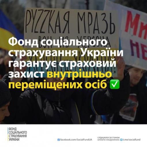 Фонду соціального страхування України гарантує страховий захист внутрішньо переміщених осіб