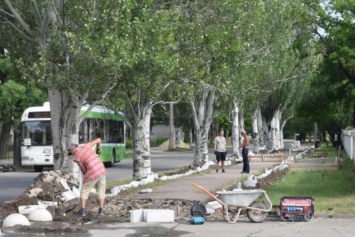 Слід зазначити, що з парної сторони проспекту Центрального укладання тротуарної плитки виходить на фінішну пряму.