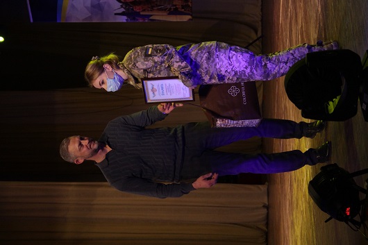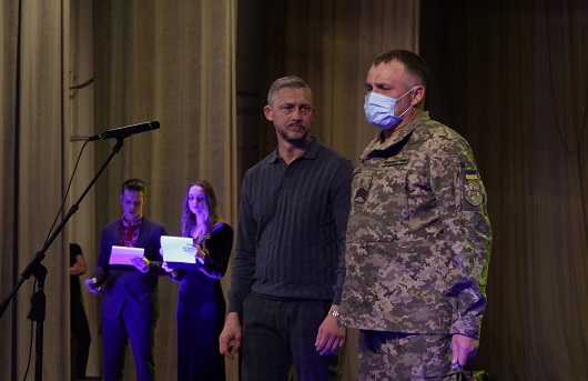 Керівник військово-цивільної адміністрації міста Сєвєродонецьк Олександр Стрюк під час урочистостей у міському Палаці культури з нагоди Дня захисника України та Дня Українського козацтва відзначив військовослужбовців Збройних сил.
