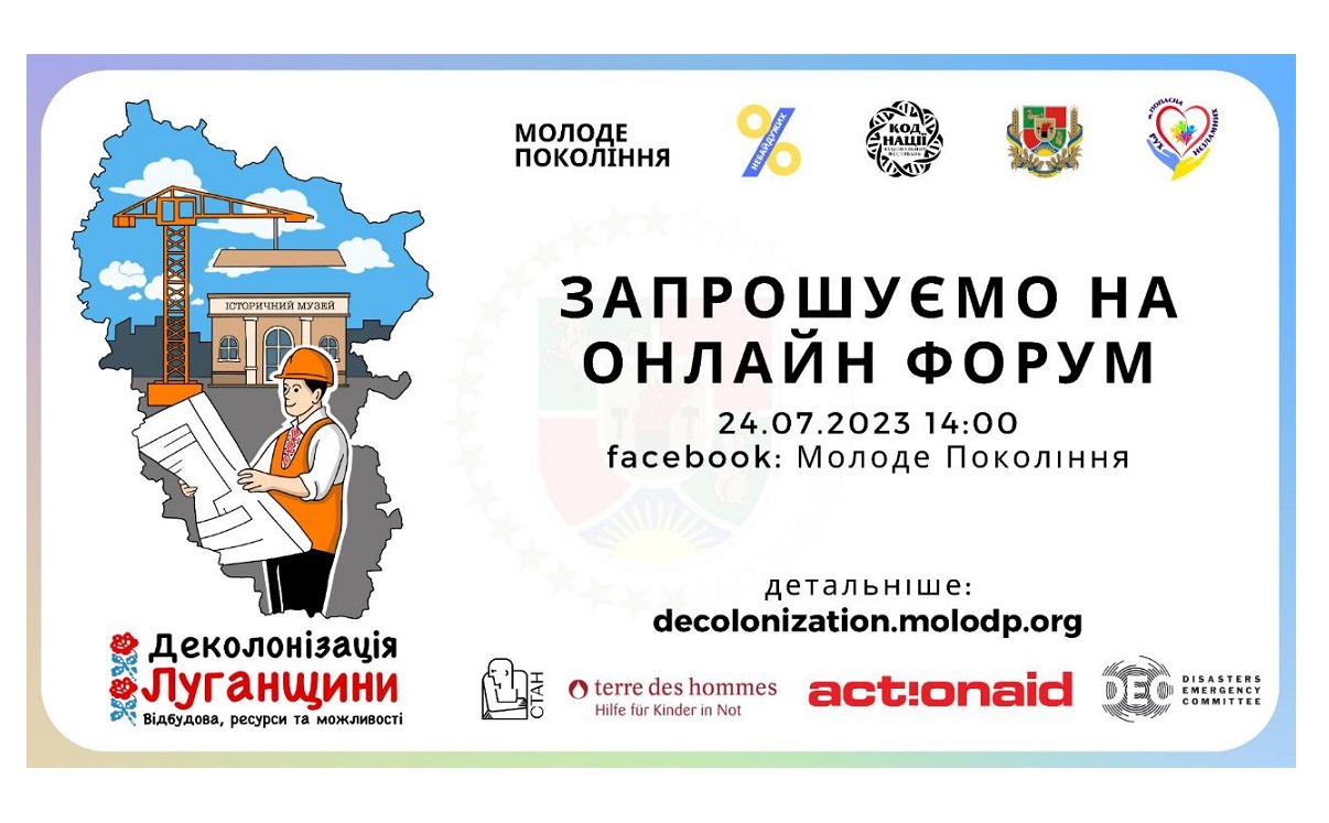 ГО «Молоде покоління» запрошує мешканців Луганської області взяти участь в онлайн форумі «Деколонізація Луганщини. Відбудова, ресурси та можливості»