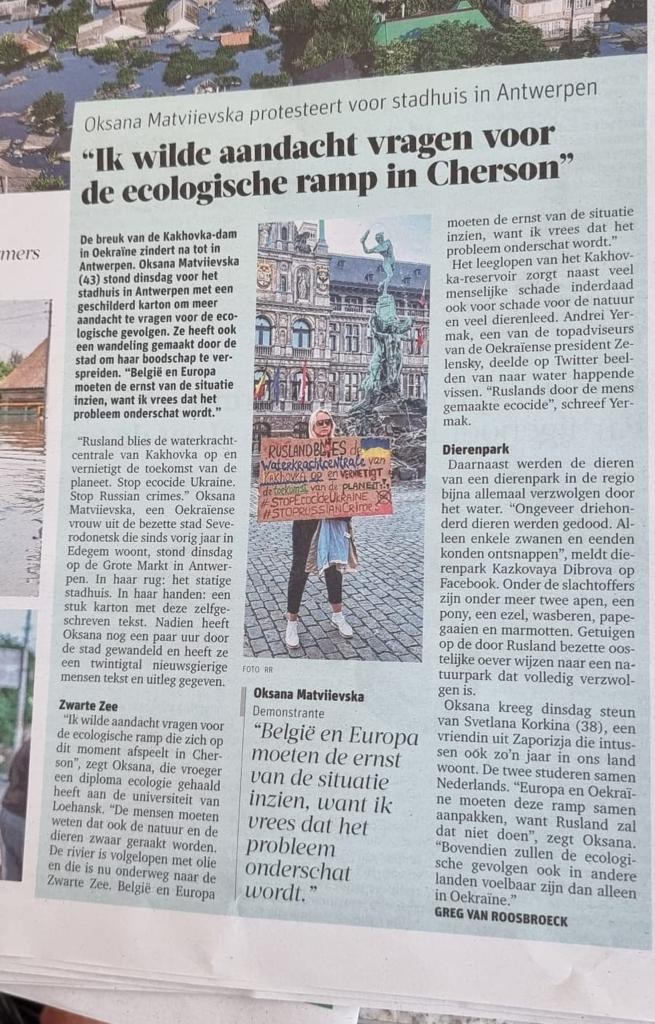 Їх голос був почутий. Разом з розповідями про тварин, які загинули, яких спасають всі небайдужі українці, перехожим бельгійцям вони розповідали і про інші екологічні злочини, які творять російські війська в Україні. Побачили і почули їх і засоби масової інформації міста. Так у найбільшій газеті м. Антверпен «Gazet van Antwerpen» вийшла доволі велика стаття, в якій Оксана Матвієвська доволі розлого розповіла про війну і страждання нашого народу, який попри все не втрачає людяність, на відміну від російських варварів.