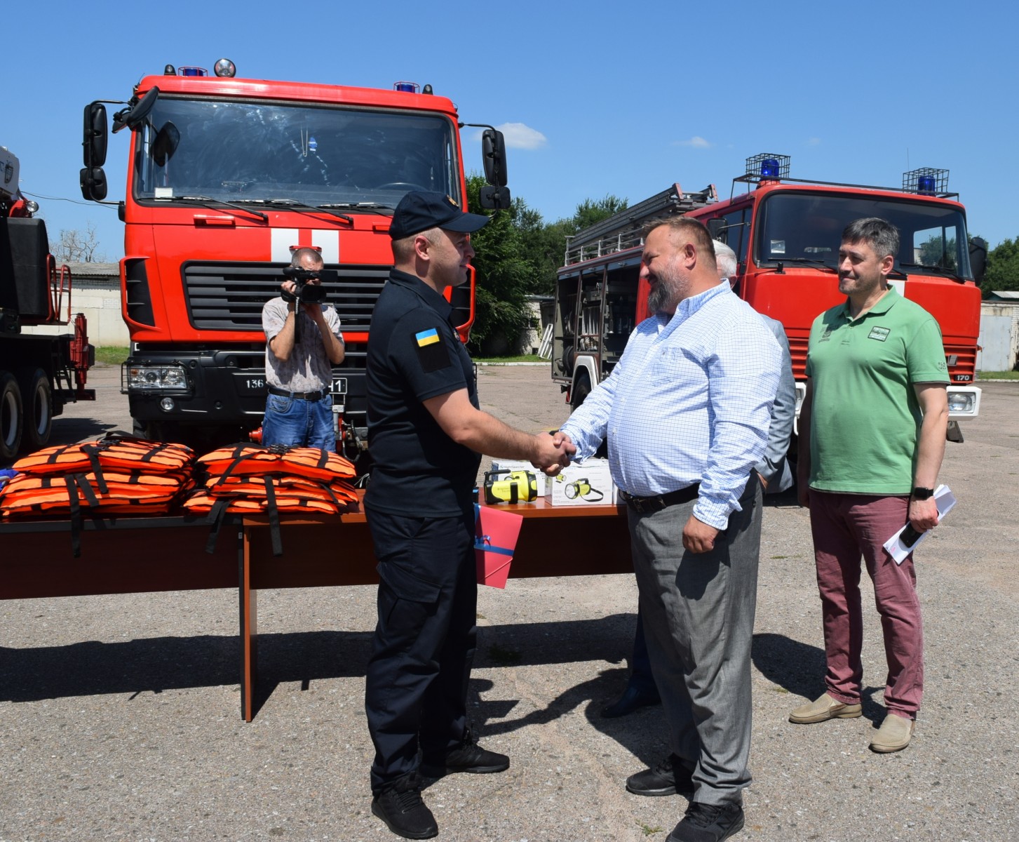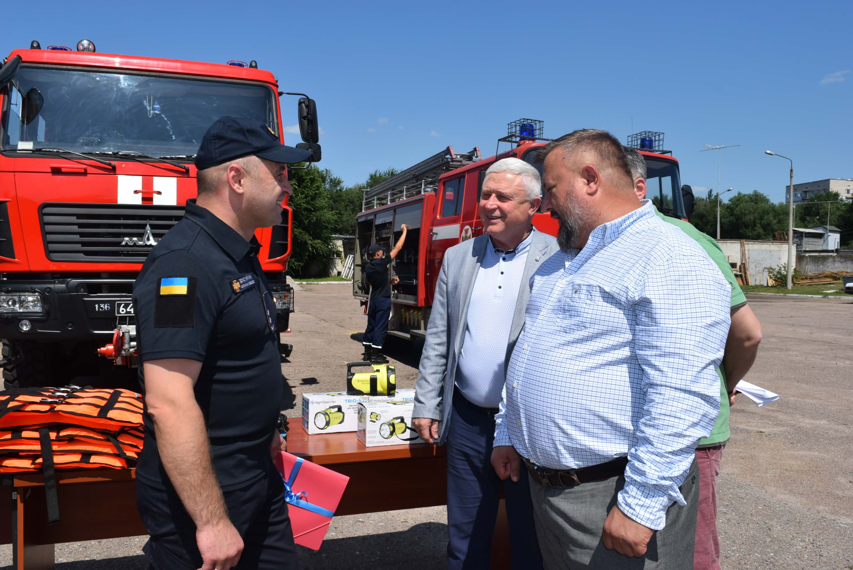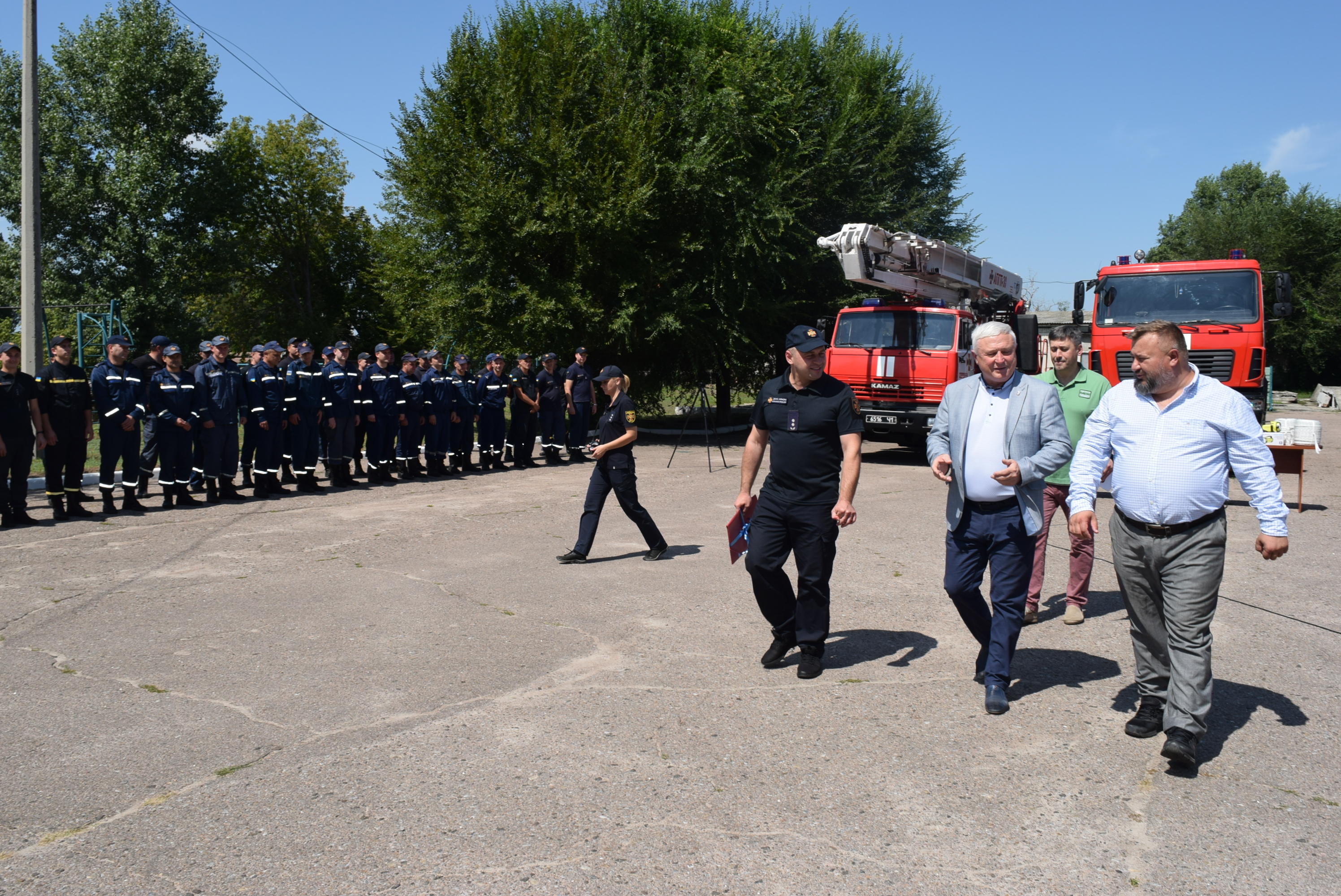 І вже 07 серпня відбулась урочиста передача обладнання. Особовий склад пожежно-рятувальної частини з нагоди урочистих заходів вишикувався на плацу. У цій події взяли участь всі, хто докладав зусилля для того, щоб сьогодні рятувальники мали можливість працювати з сучасним обладнанням.