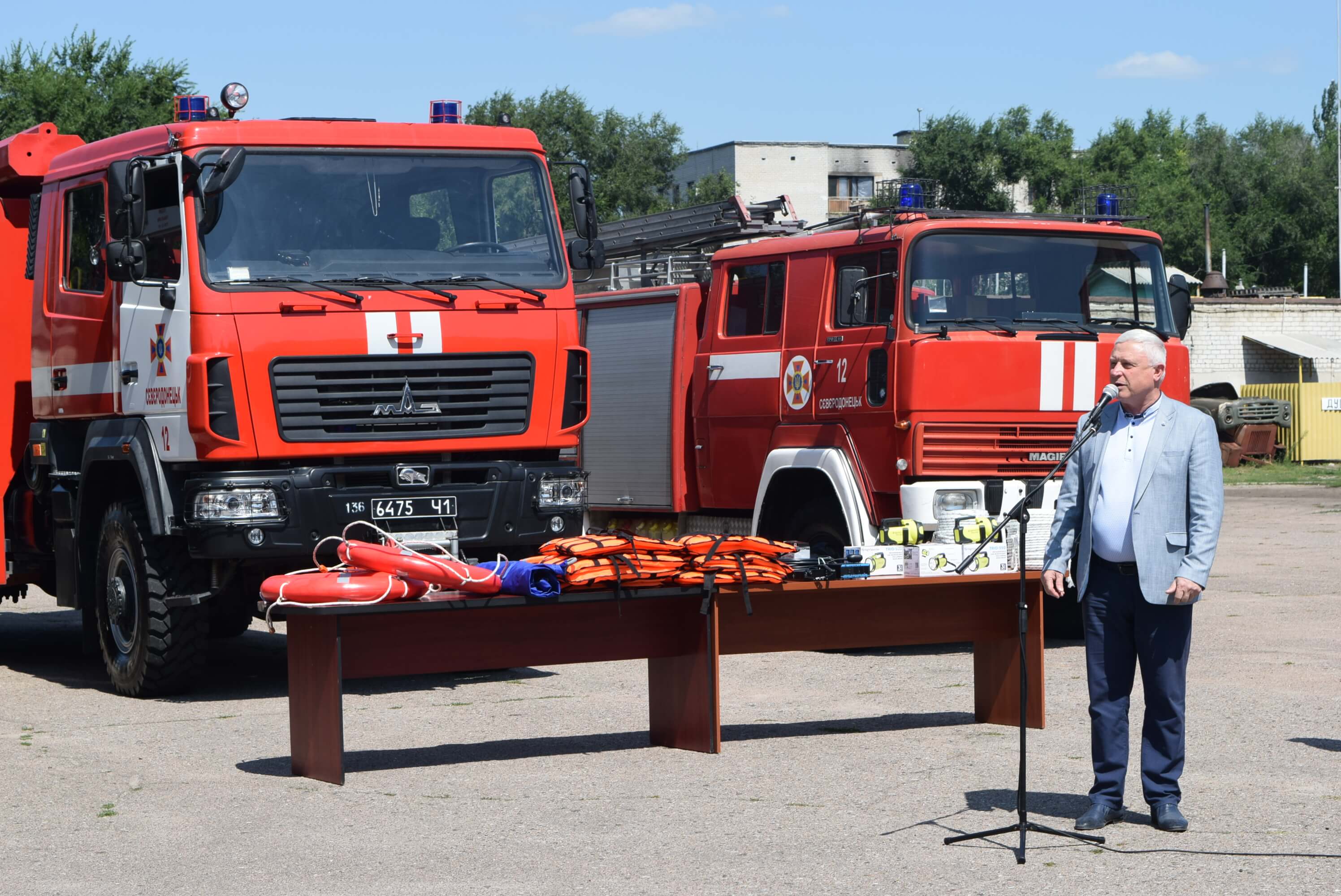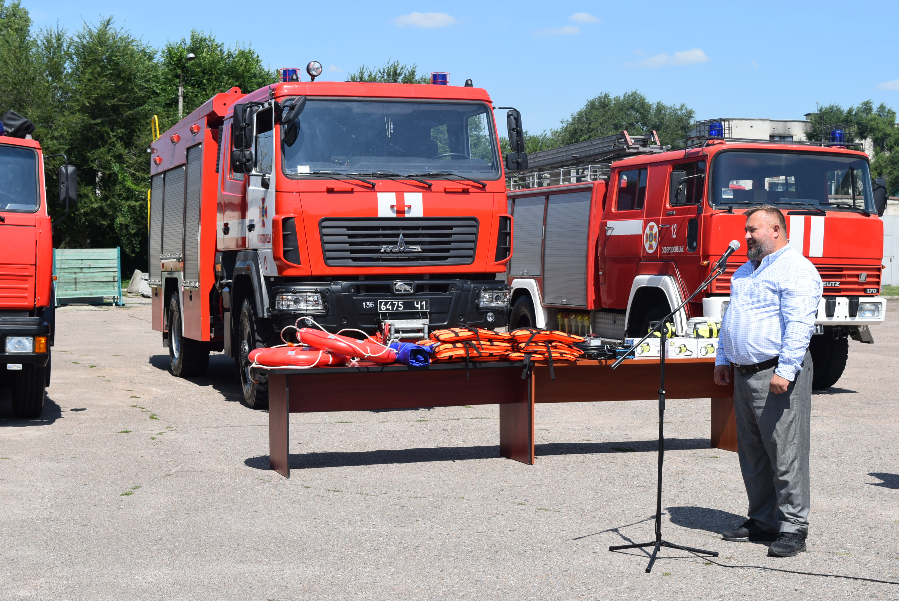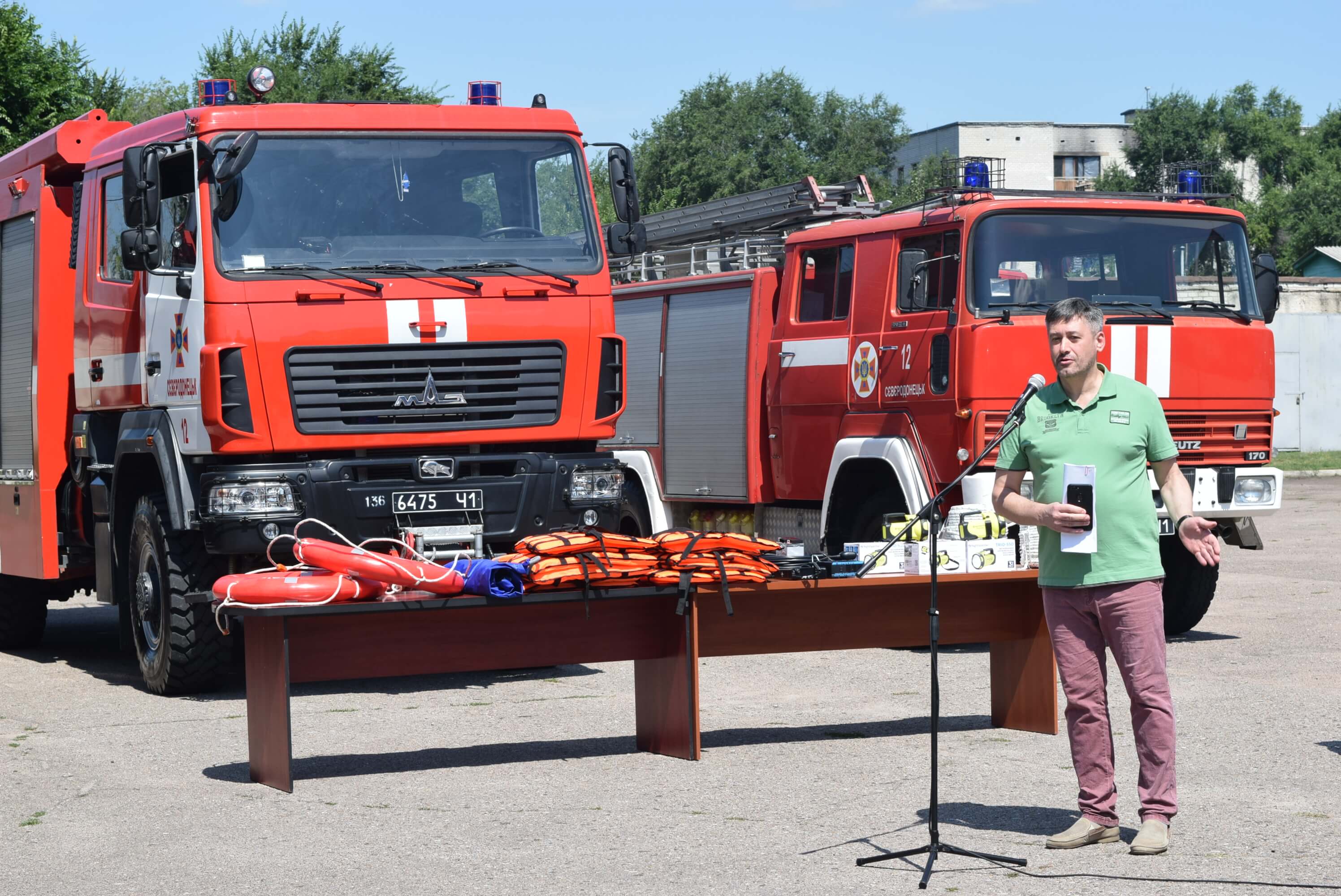 І вже 07 серпня відбулась урочиста передача обладнання. Особовий склад пожежно-рятувальної частини з нагоди урочистих заходів вишикувався на плацу. У цій події взяли участь всі, хто докладав зусилля для того, щоб сьогодні рятувальники мали можливість працювати з сучасним обладнанням.