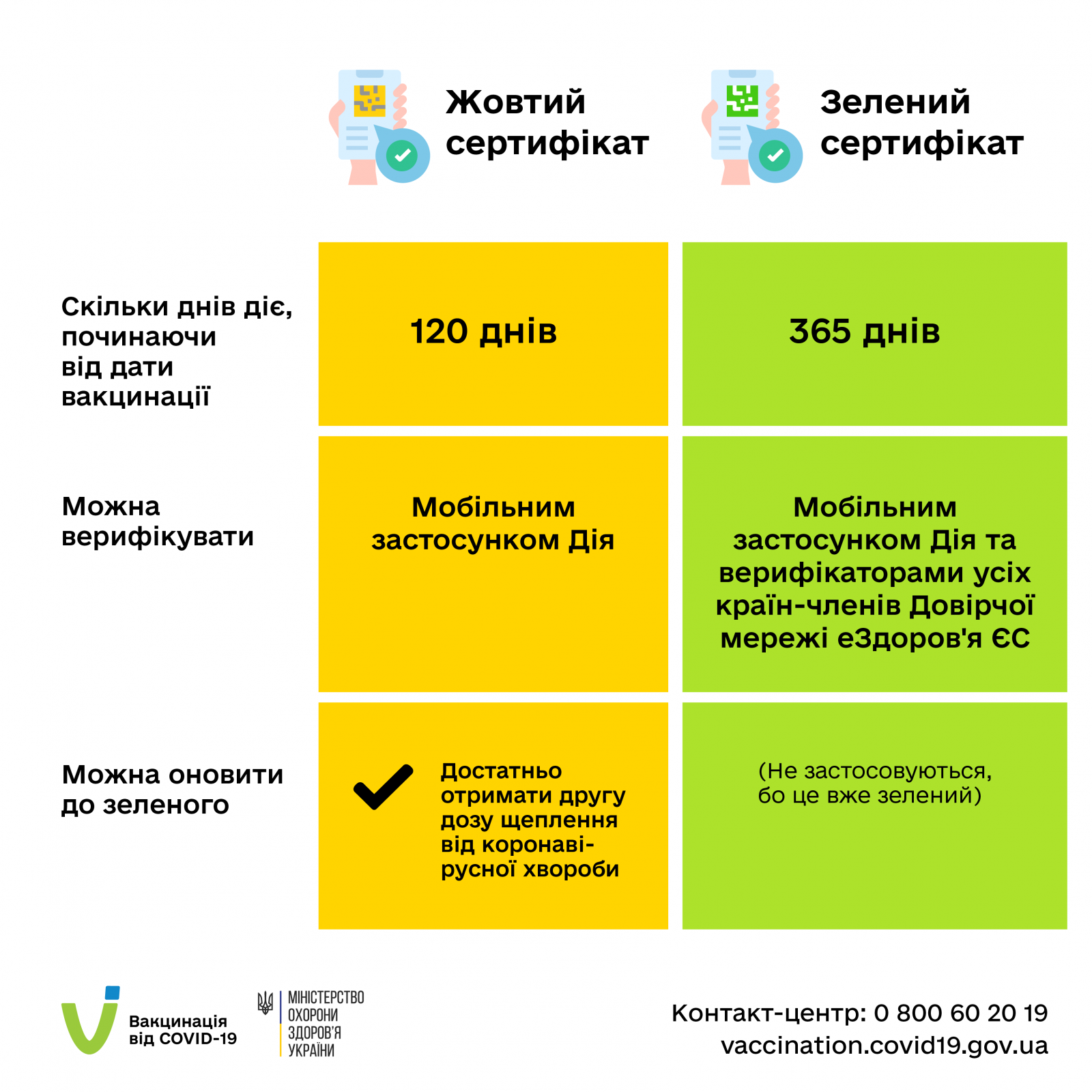 Міжнародне свідоцтво про вакцинацію та “зелений” COVID-сертифікат діятиме протягом 1 року.