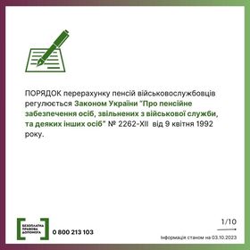 Інформація про порядок перерахунку пенсій військовослужбовців