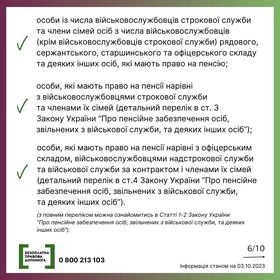 - особи, які мають право на пенсії нарівні з військовослужбовцями строкової служби та членами їх сімей (детальний перелік в ст.3 Закону);