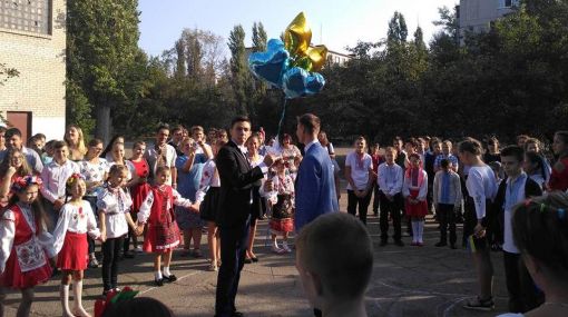 Школярі, серед яких 67 дітей-переселенців, зробили патріотичний флешмоб, яким наголосили важливість миру на нашій землі.