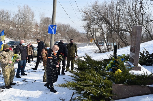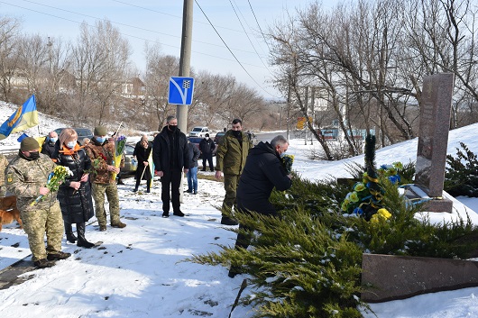 Присутні вшанували добровольців і борців за незалежність Держави виконанням Гімну України та поклали квіти до пам’ятного знаку на місці загибелі Олександра Радієвського і його побратимів.