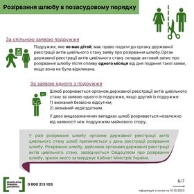 Детальніше про порядок укладання шлюбу та порядок його розірвання - в картках: