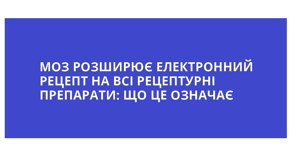 Для того, щоб спростити процес призначення ліків, зробити його ефективнішим та сучасним, весною 2023 року МОЗ впроваджує електронний рецепт на всі рецептурні ліки. Також це дозволить посилити контроль за відпуском рецептурних ліків у аптеках.