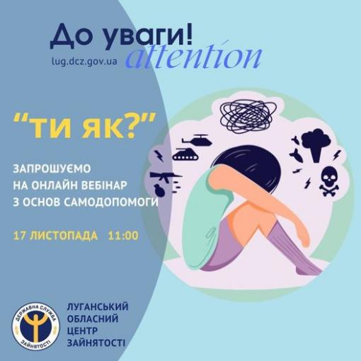 Луганська служба зайнятості запрошує на онлайн вебінар з основ самодопомоги