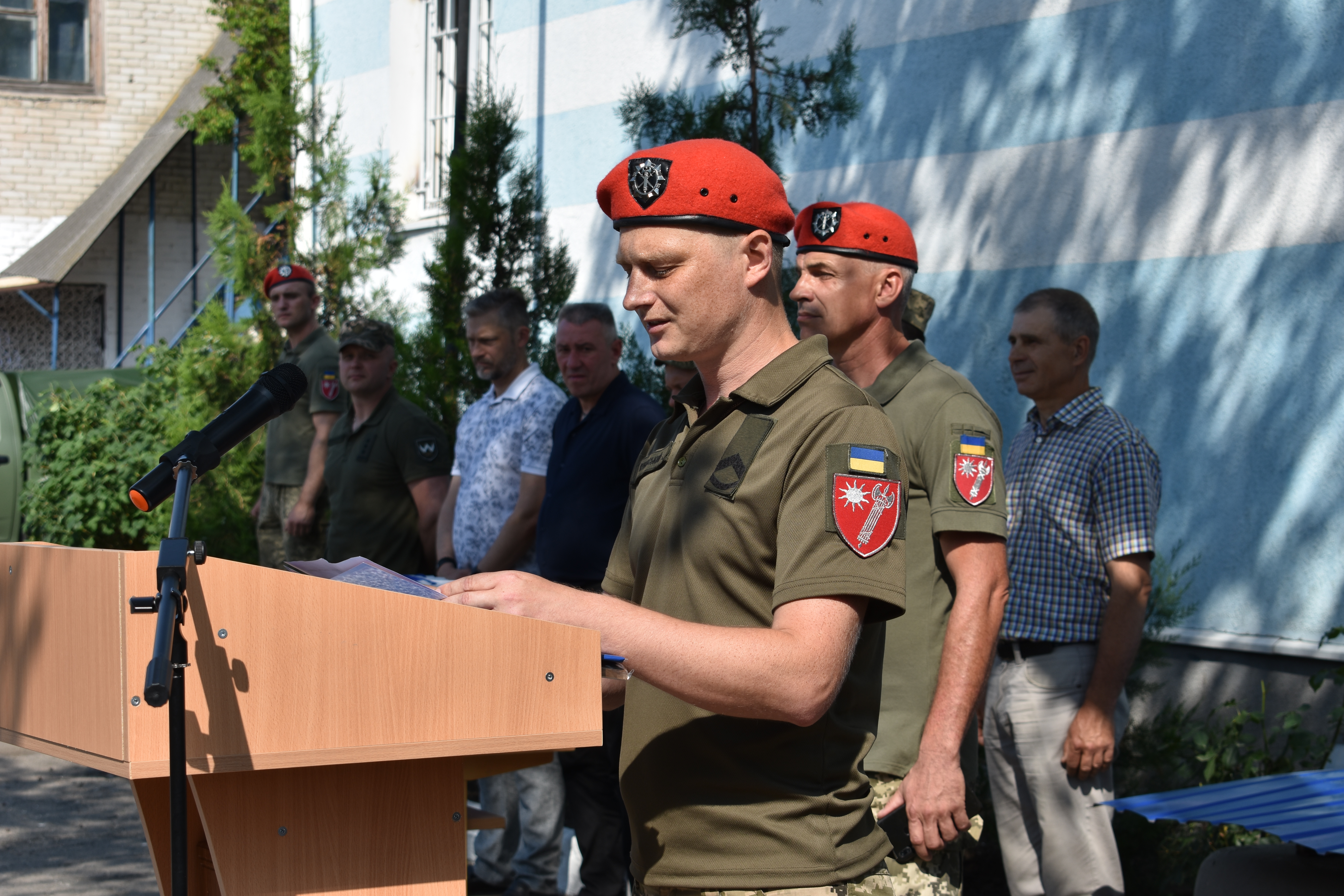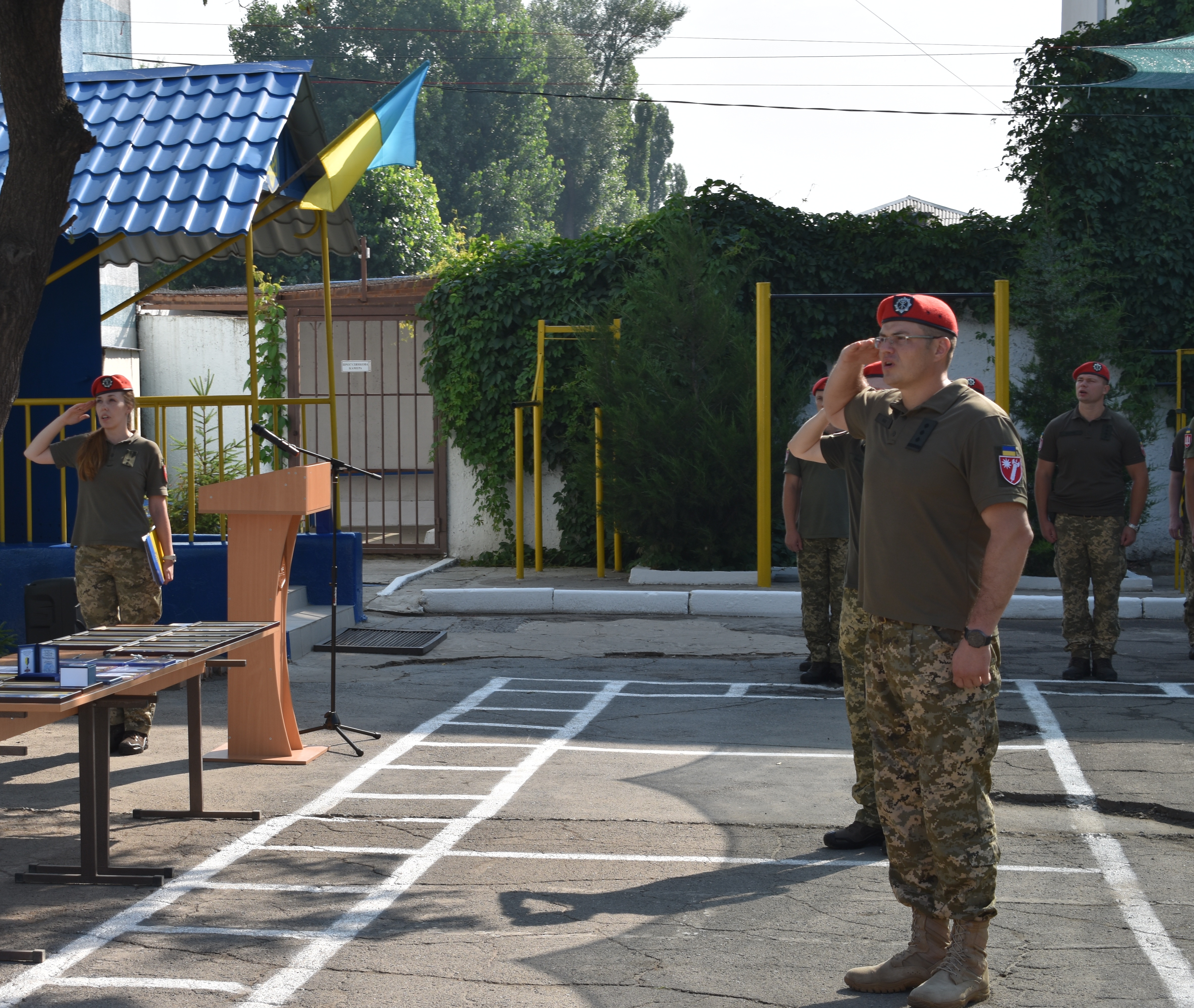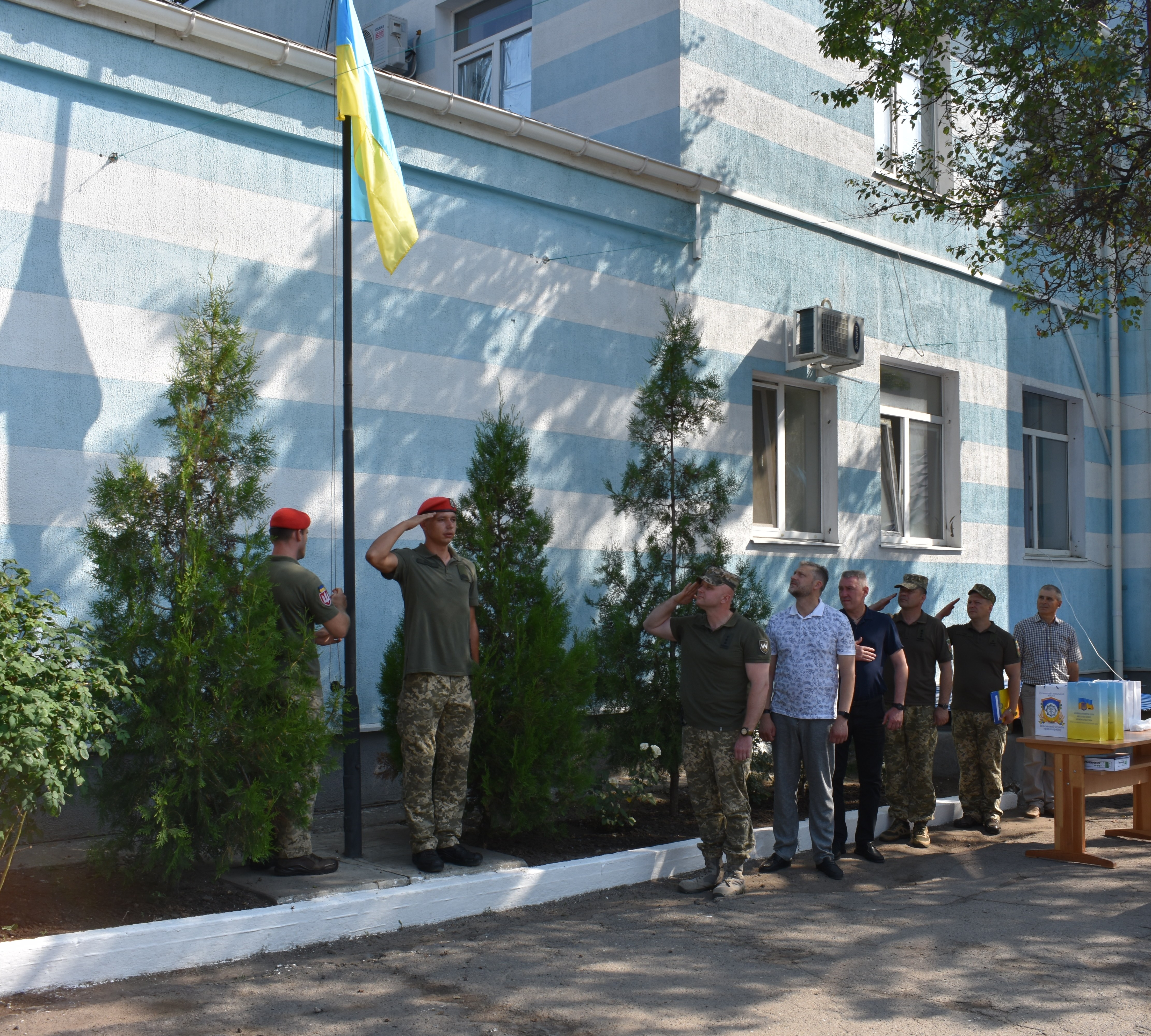Після підняття Прапора України до всього особового складу звернувся командир оперативно-тактичного угрупування “Північ” полковник Володимир Горбатюк: «До 2014 року військова служба правопорядку, піхота, танкісти не мали такої взаємодії, такої співпраці, такої підтримки, яку мають зараз. Я знаю чітко – на ваш підрозділ, на вашого командира, на вас в питаннях правопорядку можна покластись на 100%. Зі святом! Слава Україні!».