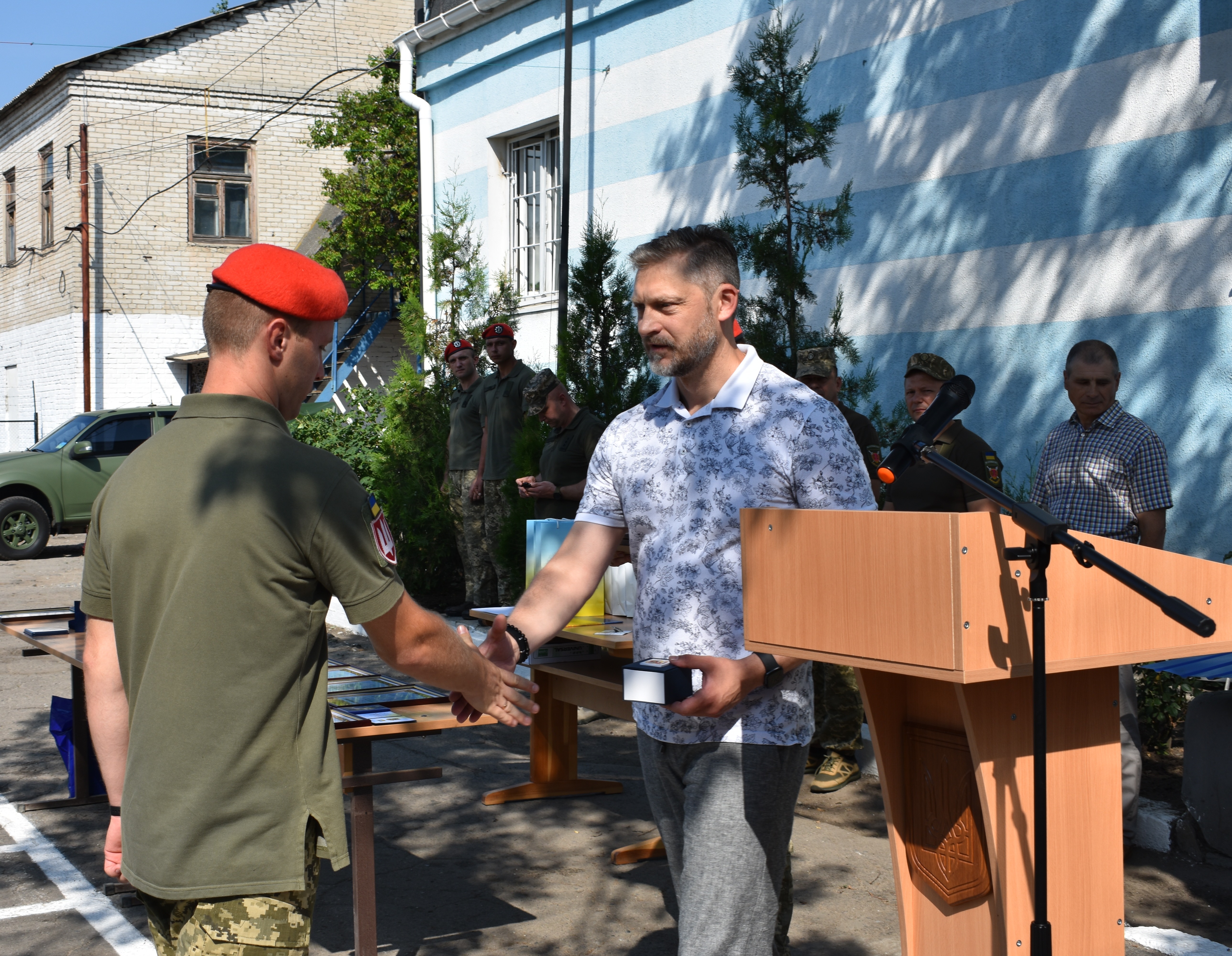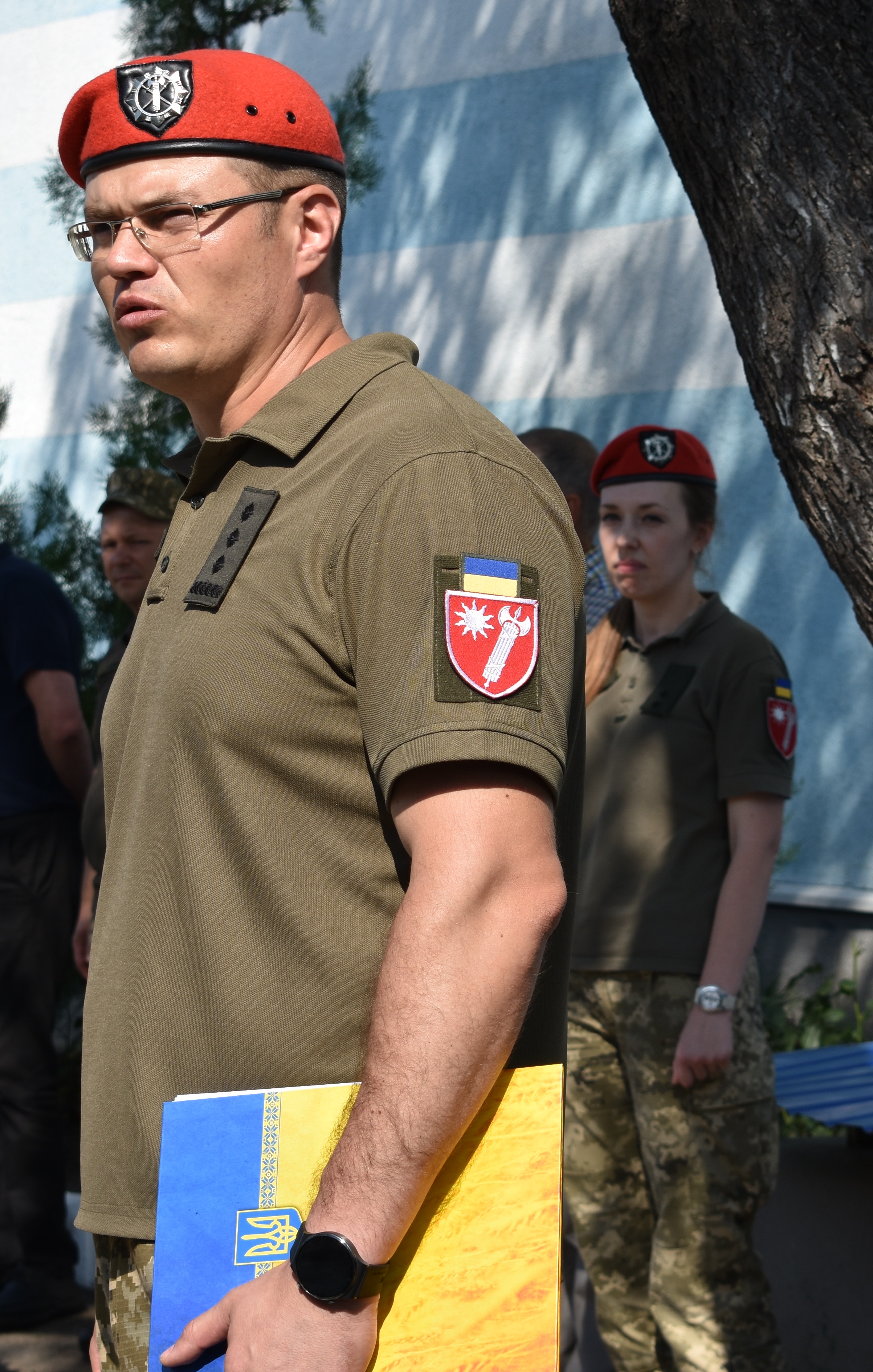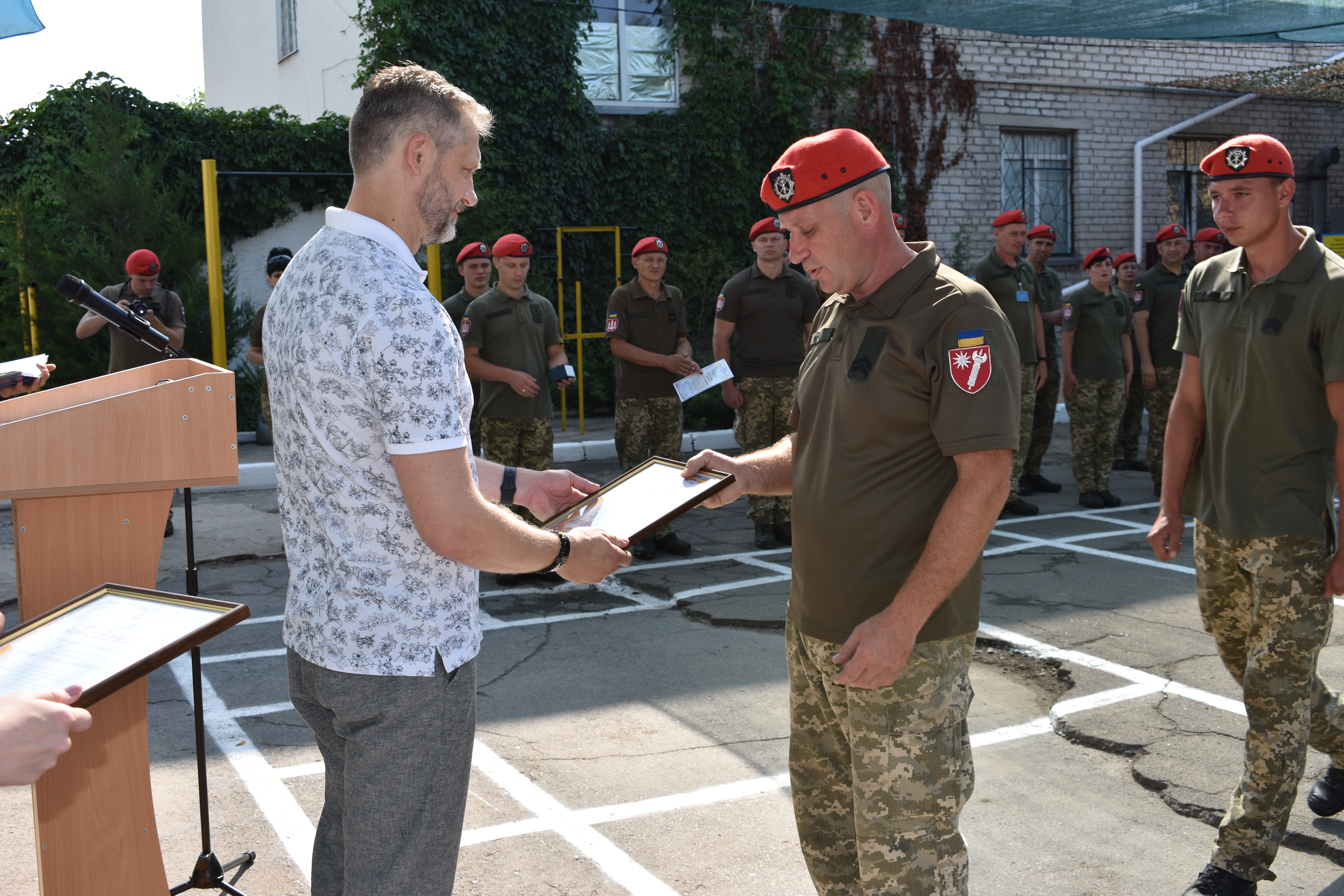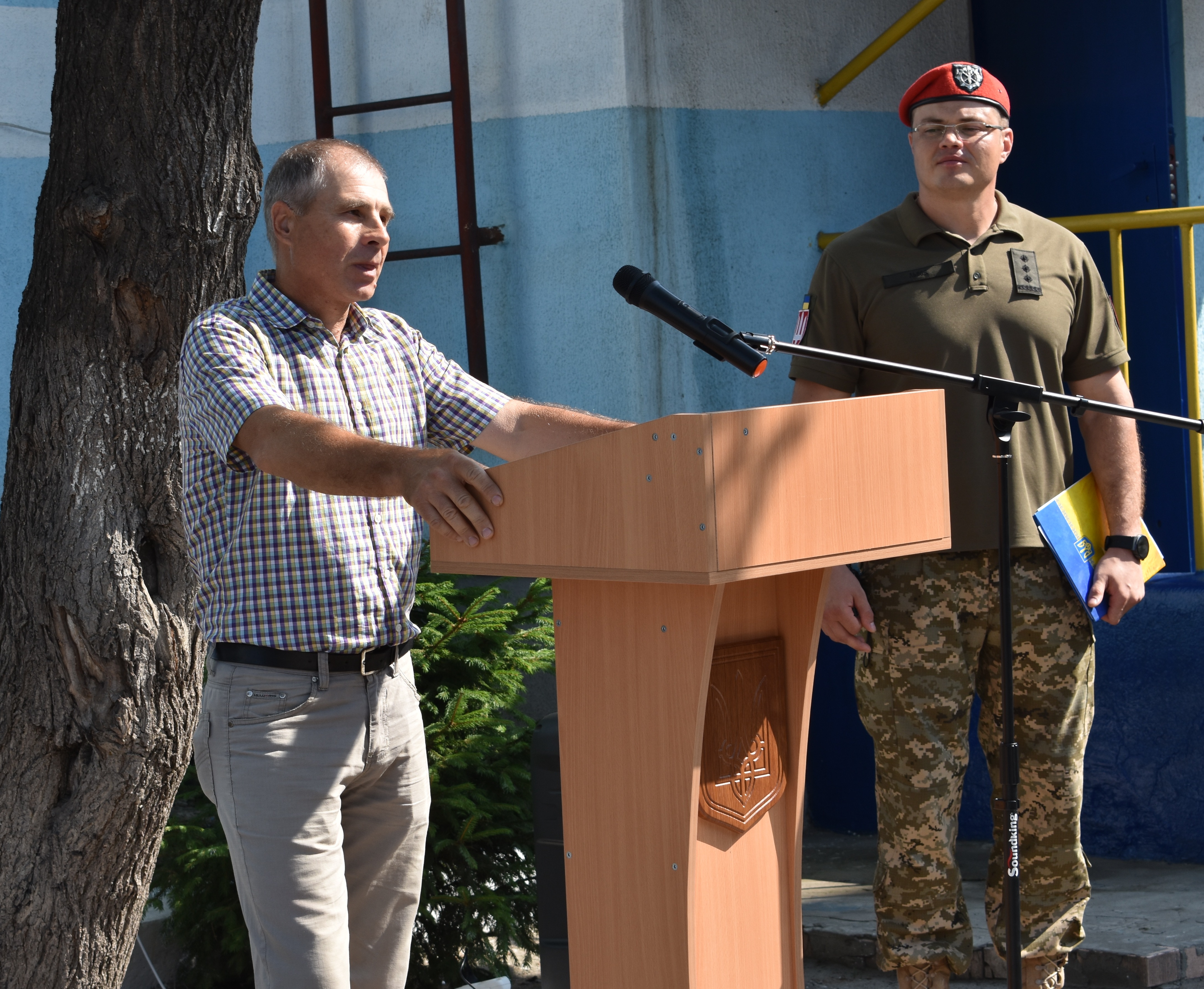 Після підняття Прапора України до всього особового складу звернувся командир оперативно-тактичного угрупування “Північ” полковник Володимир Горбатюк: «До 2014 року військова служба правопорядку, піхота, танкісти не мали такої взаємодії, такої співпраці, такої підтримки, яку мають зараз. Я знаю чітко – на ваш підрозділ, на вашого командира, на вас в питаннях правопорядку можна покластись на 100%. Зі святом! Слава Україні!».