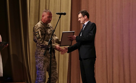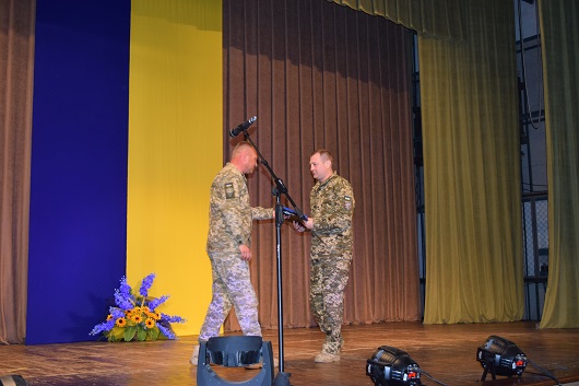 Від Луганської обласної військово-цивільної адміністрації перший заступник керівника Олексій Смирнов вручив заступнику командира 80-тої окремої десантно-штурмової бригади Почесну грамоту за значний внесок у зміцнення національної безпеки.